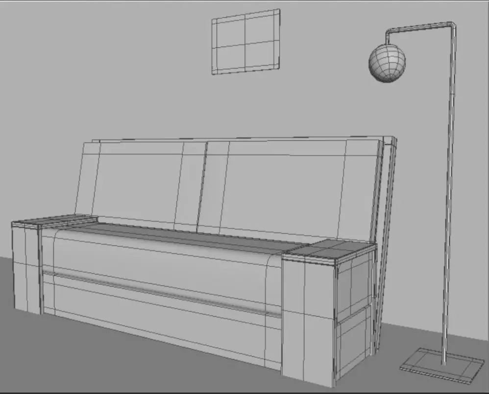I used Maya 2018 for this model. sofa, floor light, photo frame, wall, floorBut I provide MA, MB, obj format.A low poly model with minimum detailing for game and CG purposes.All object UV is done separately in the group and easily can modify.All object separate texture done in photoshop PSD file included.