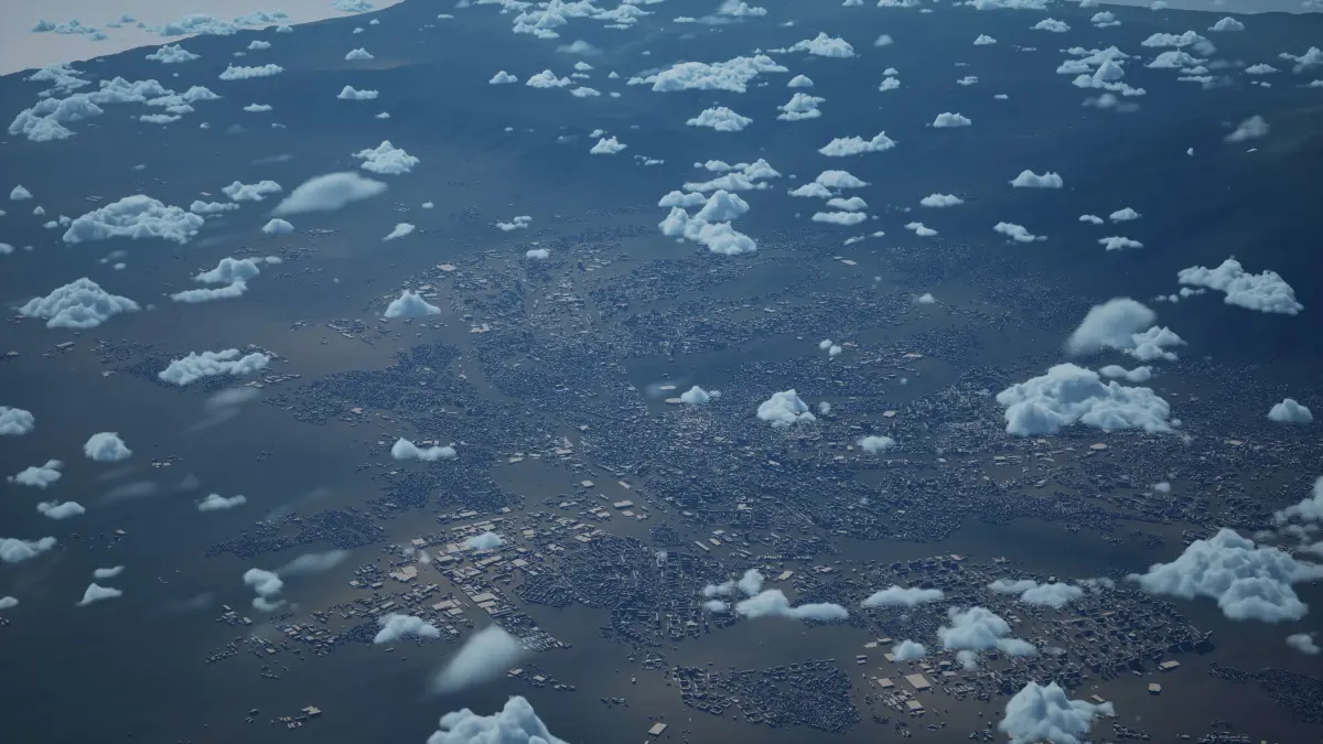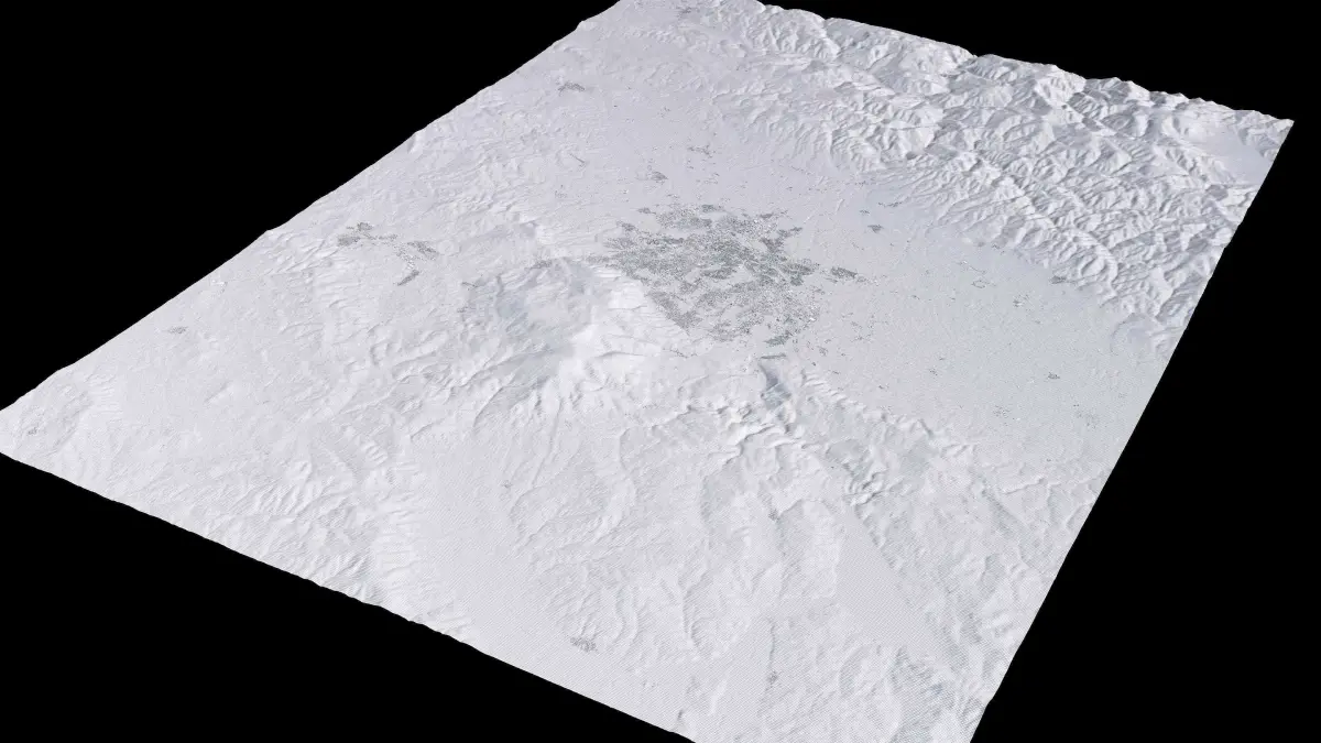 Originally created in Houdini 19. Final images rendered in Houdini. Data source is ASTER GDEM V3, ASTER WATER V1, Open Streep Maps 2022, Copernicus Sentinel 2016.