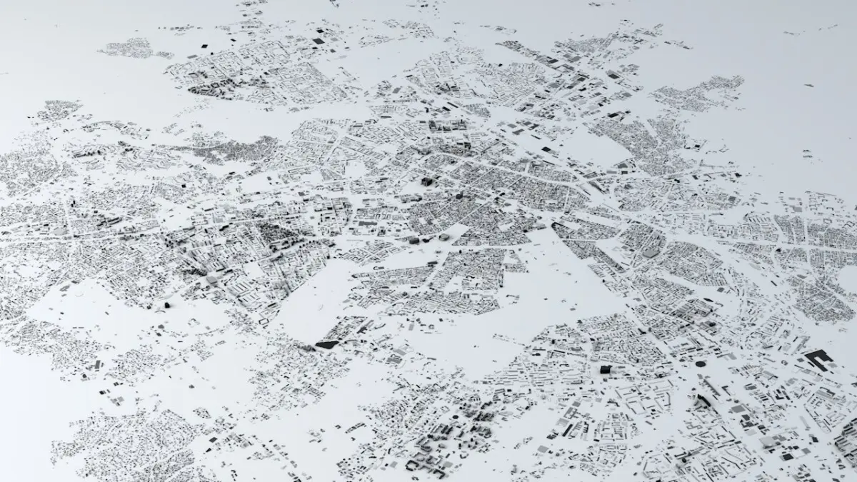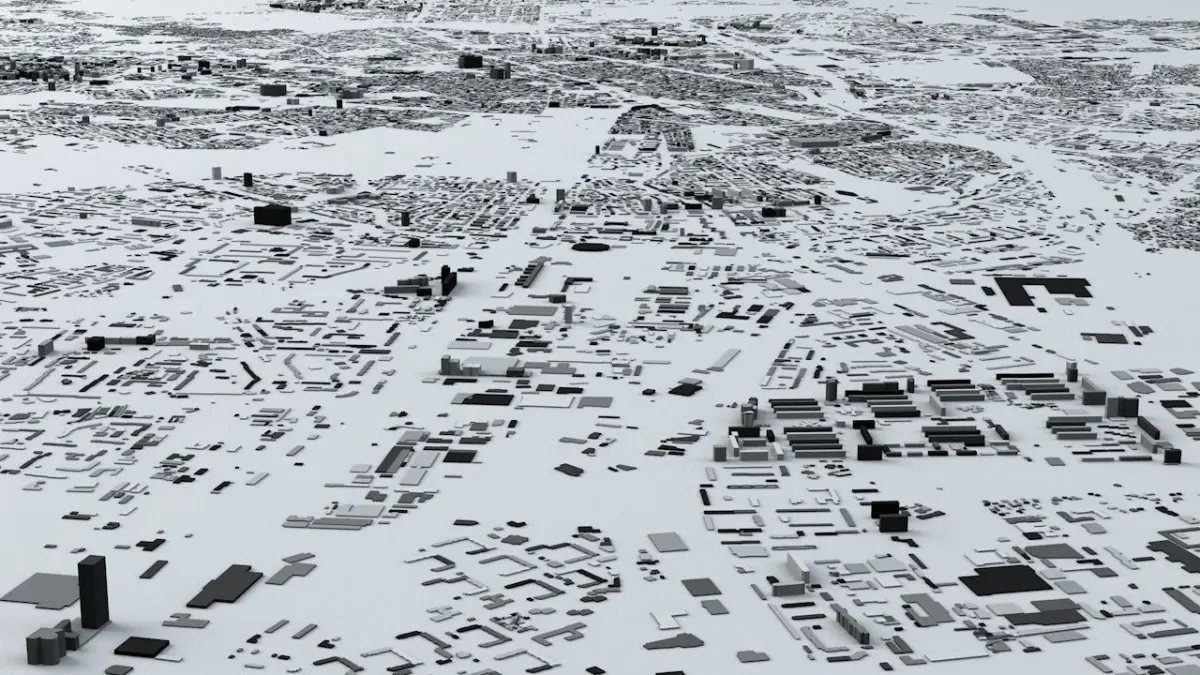 - the model is positioned on a flat surface (all buildings are on the “floor” - no elevation data included)
