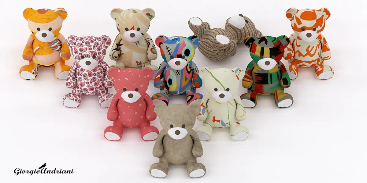 Soft toy bear 230 mm. in height. 2 options fur10 texture options In stage 12 bears