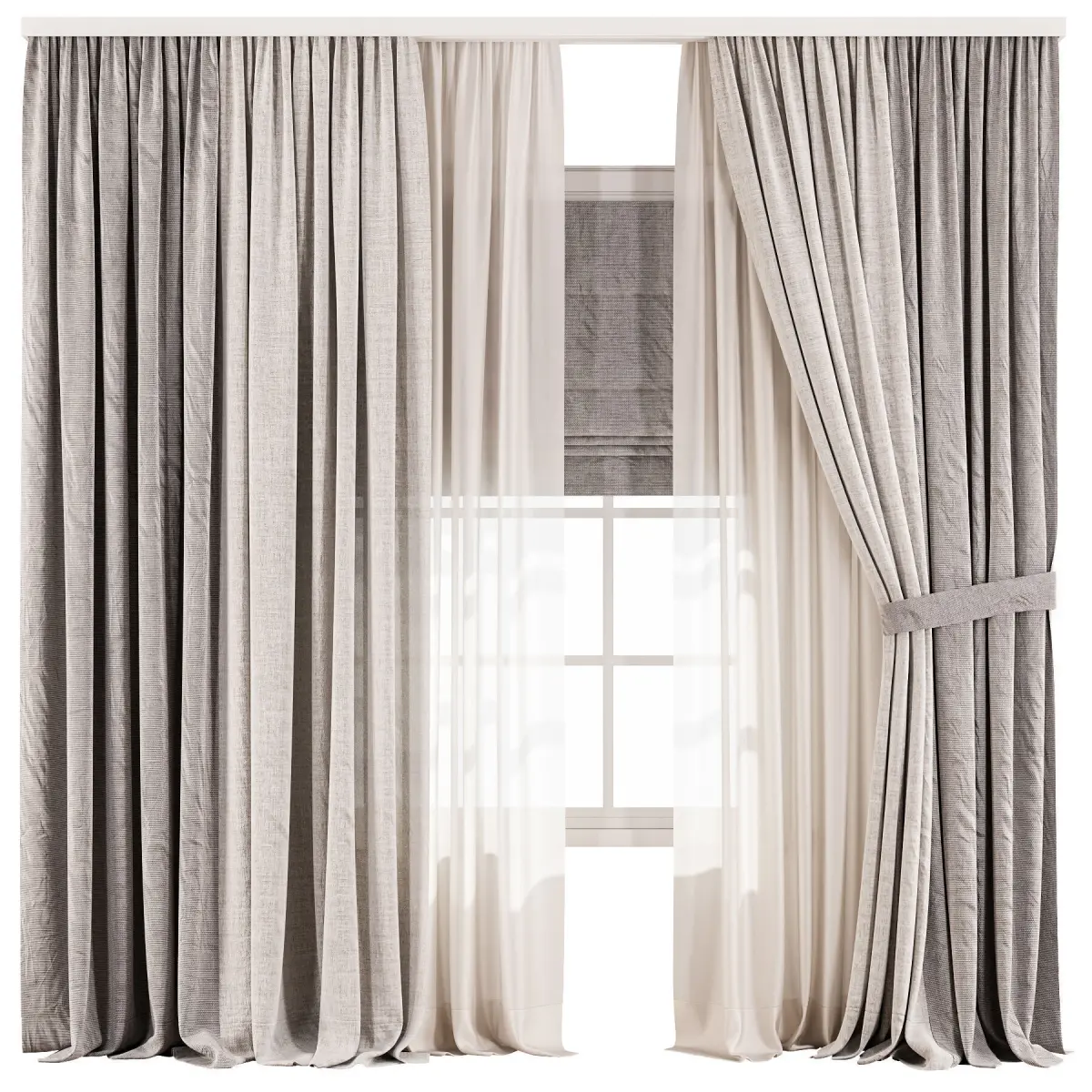 Description:A high-quality curtain set designed for premium interior visualizations. This meticulously crafted model features a sophisticated layered curtain arrangement, including soft linen drapes, sheer fabric curtains, and a classic Roman blind, creating an elegant and timeless look.