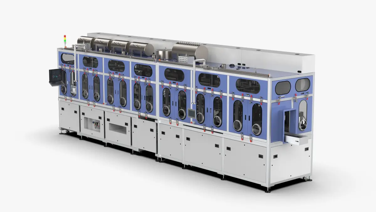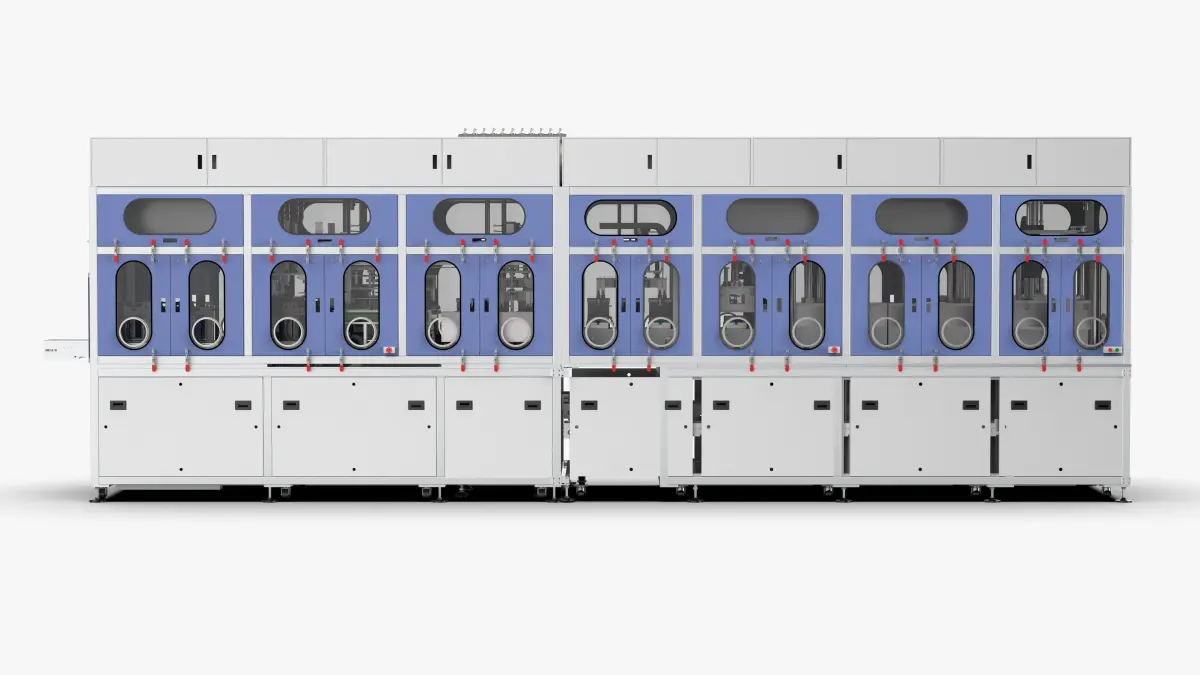 This equipment is mainly used for the automatic liquid injection machine shared by the mobile phone soft pack lithium-ion battery and the power battery. The main process is the automatic feeding and sealing process. Realize the functions of weighing before filling, automatic filling, automatic standing, automatic vacuum sealing, automatic heating and packaging after filling, automatic sorting of defective products, automatic discharge and other functions for soft-packed batteries. The efficiency of the battery vacuum liquid injection machine is relatively high. It is designed according to the structure of one out of six. The cutting and other processes are all automated. Starting from the front-end loading, circulation jig, to the liquid injection station, three-stage static, vacuum packaging, unloading, the structure is complete, the frame is welded with aluminum profiles, and the outer cover can be seen from the figure After hiding, the structure inside is very complicated. The design of the battery grabbing and handling manipulator, and the design of the battery feeding and conveying tooling and fixtures are very valuable to learn. -100kPa high vacuum; Secondly, maintain differential pressure laminar flow injection during liquid injection, avoid spraying and spraying of liquid injection nozzle, and set up multiple vacuum and pressure cycles after liquid injection. In order to prevent excessive volatilization of electrolyte, the evacuation pressure is set at -65~-76kPa; Since the vacuum needs to be drained before liquid injection, and the vacuum needs to be low during the pumping cycle after liquid injection, in order to increase the stability of the equipment, four sets of vacuum systems, three vacuum pumps and four storage tanks are specially added. Air filling. One set of vacuum system consists of one TRP24 vacuum pump for high vacuum pumping; the other set of vacuum system consists of two TRP48 vacuum pumps, and adopts the international advanced vacuum differential pressure liquid injection process to ensure liquid injection accuracy, stable production and battery Full infiltration of electrolyte, taking into account clean production and easy maintenance of equipment.