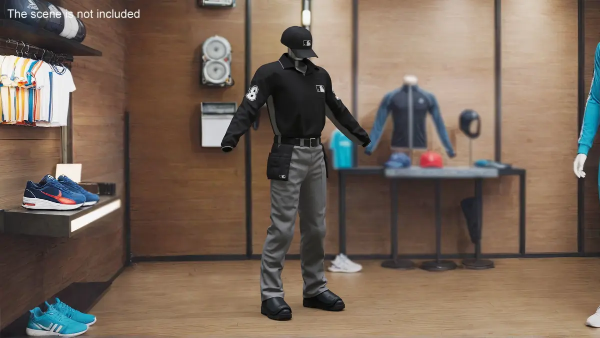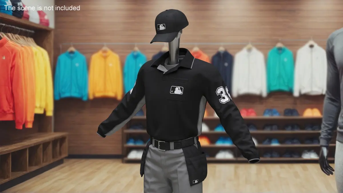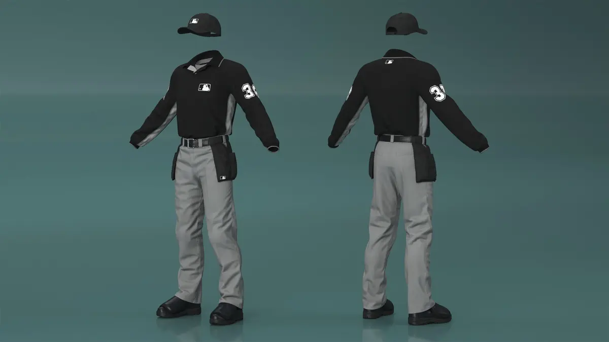 Softball Umpire Clothes is a 3d model of specific uniform and gear worn by umpires during softball games.