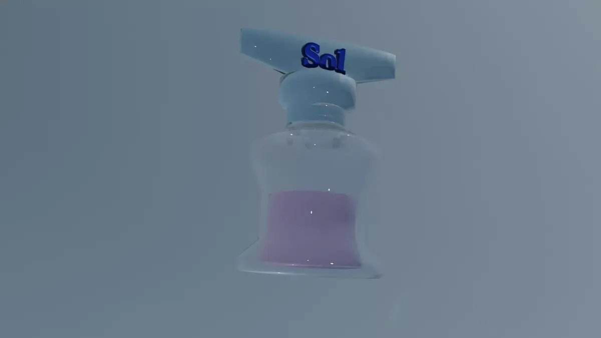 A stylish 3D model of the Sol perfume bottle, designed with a premium glass material and realistic liquid inside.Perfect for product visualization, advertising, branding, and close-up renders.