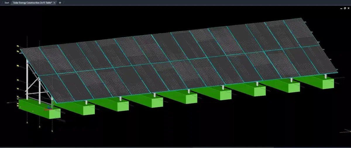 1 solar panel steel construction produces 16,5 kWp power in 1 hour