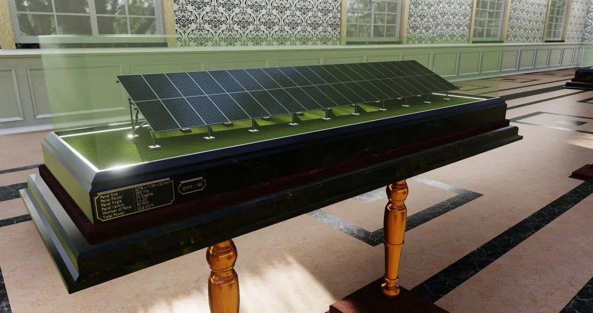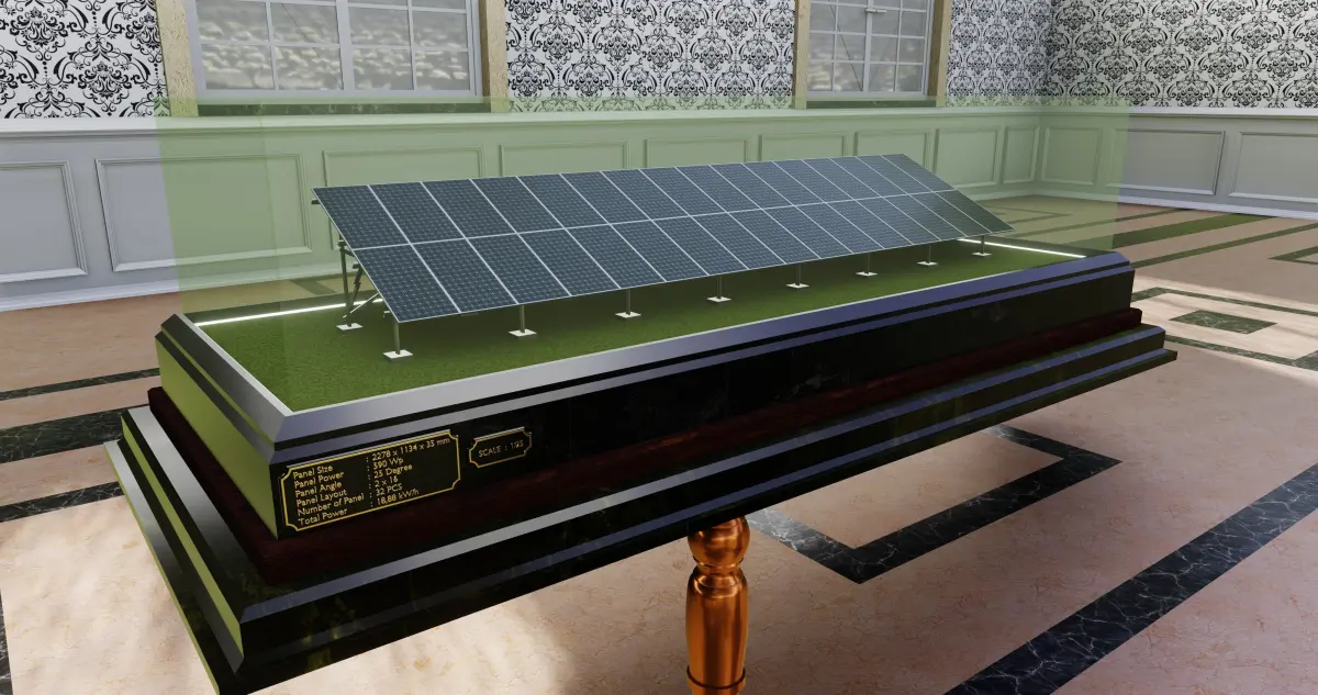 Table With 2x12 PanelsIt is the Miniature Diaroma Model of the Table, which provides 14,16 kW (DC) Hourly Power Generation with 24 Solar Panels.