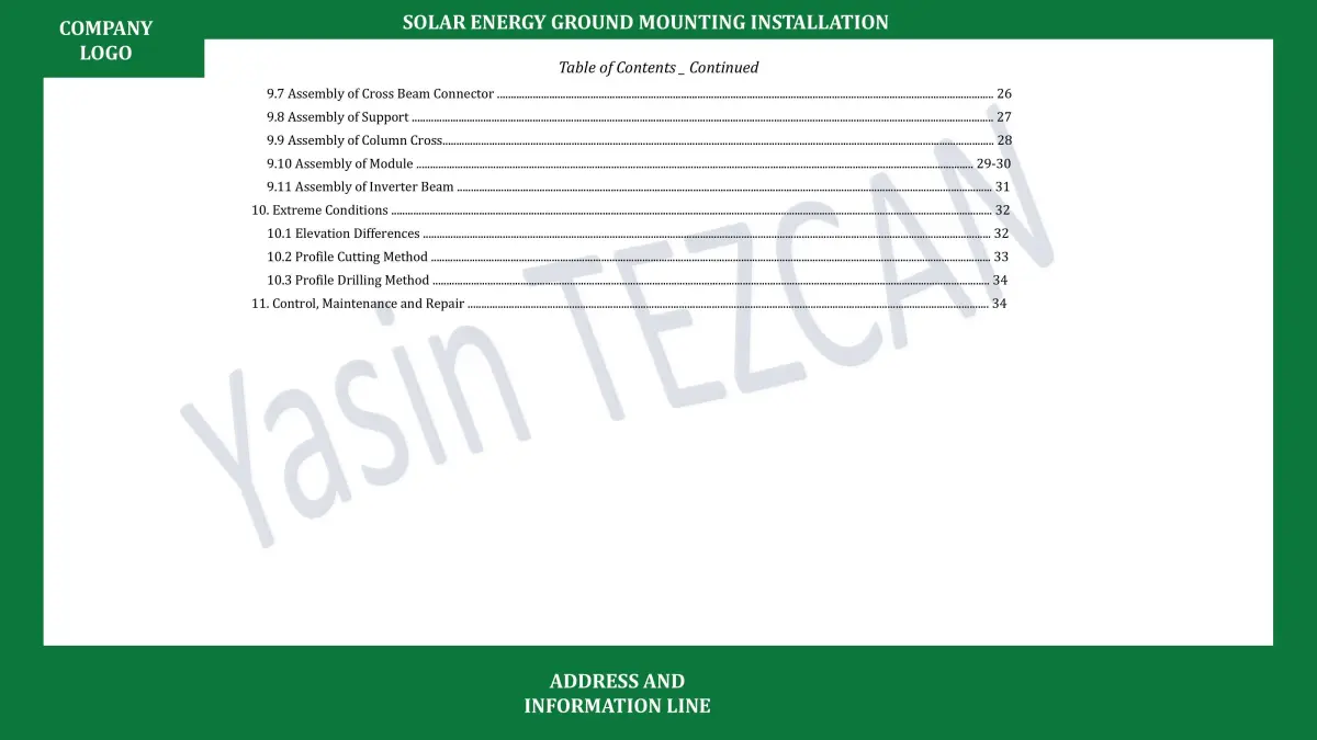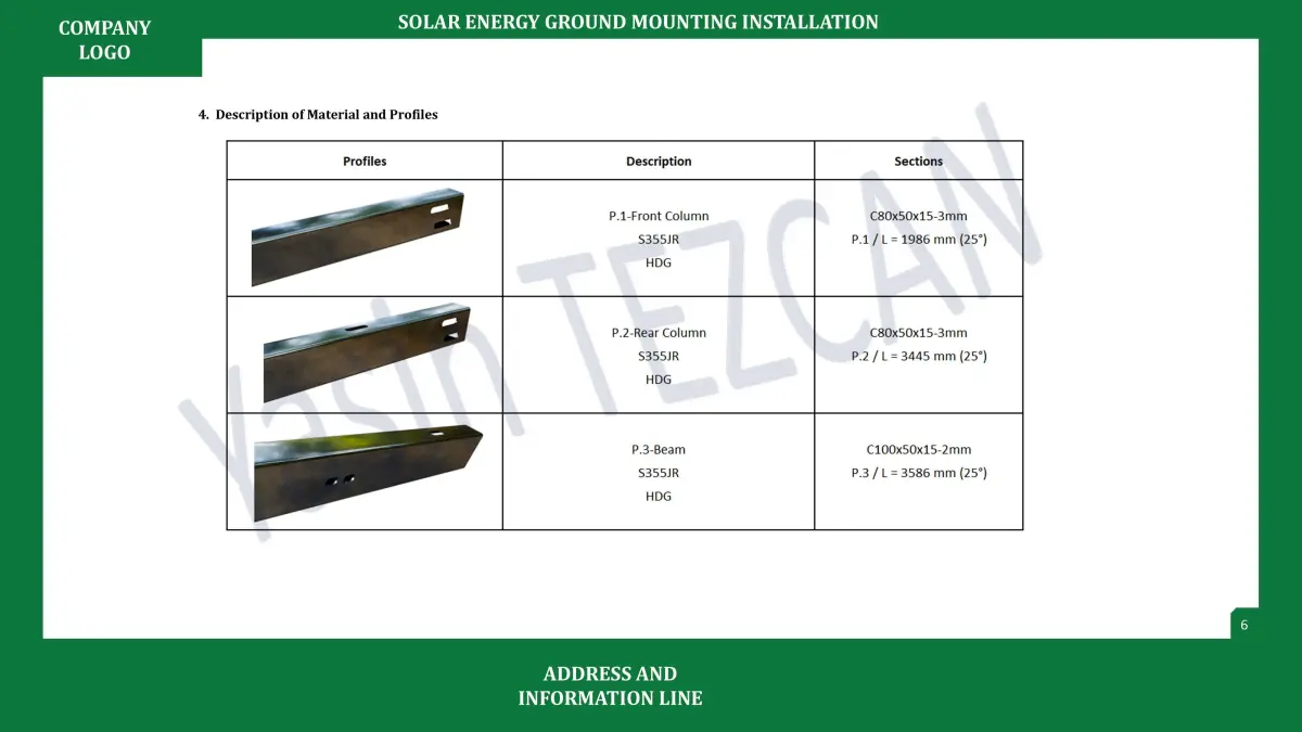 It is prepared in Powerpoint environment, editable and customizable format.It is prepared as a ground assembly guide for single column solar energy construction.There are 2x13 and 2x26 panel arrays in the assembly guide and catalog.