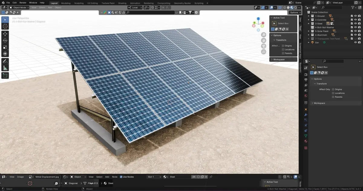21-Irrigation Solar Power 375HP-400.4kw-2x14 Table-26 pcsPrepared With BLENDER Version 4.0.1Polygons : 436349Vertices : 837788Objects : 3736