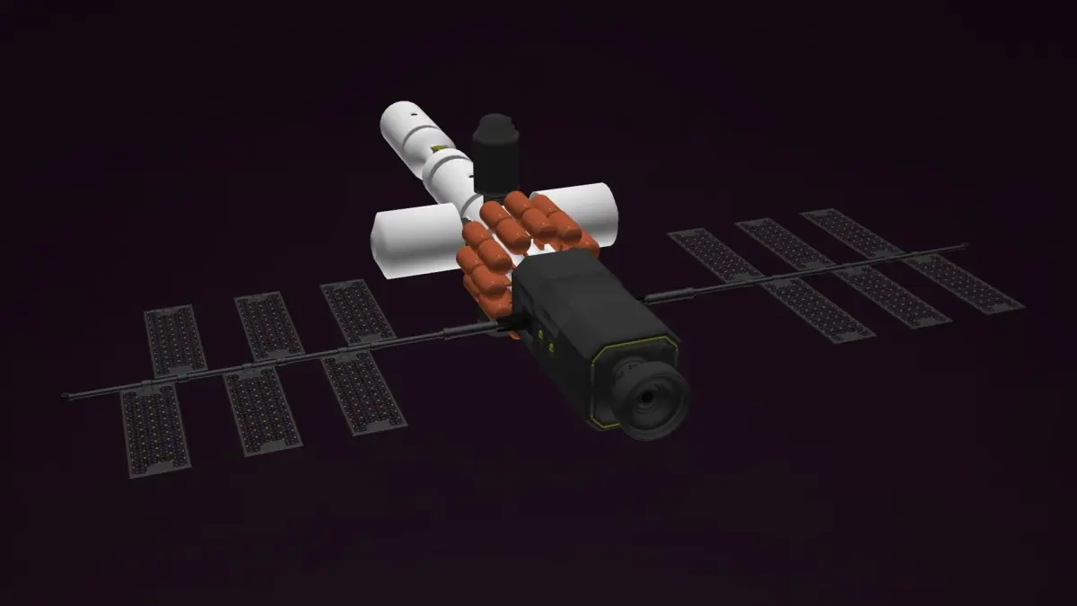 A long distance (Mars or more) space craft made of modules as you would expect to find today, single main mesh which is hollow and with animated pylon meshes holding animated solar panel meshes. A couple of textures but mostly 3ds max native basic materials.