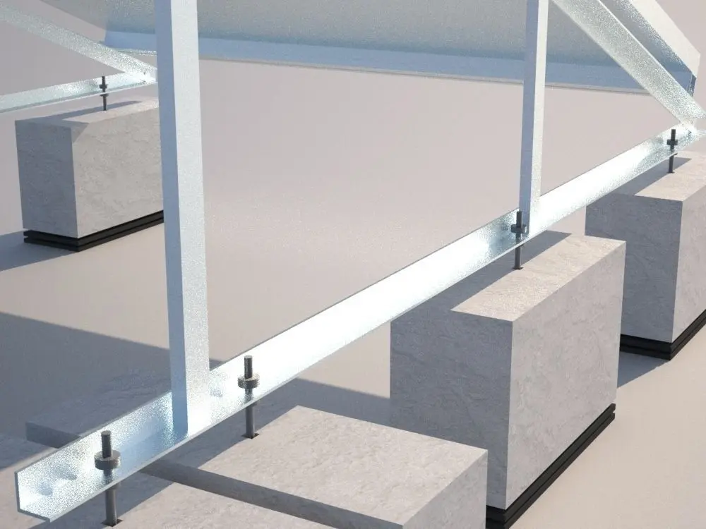 I'ts not a new design but it's simple and cheap to build.simple and common aluminium skeleton with 12mm bolts into 70Kg cement stones.this is the actual design we have been implementing on more than 1000 solar systems in Israel, for homes and industries and they have proved very robust, cheap to make and withstand any weather and force for at least 30 years with no maintainance.the panels used in this example are Schott Poly 230Wthese aluminium profiles are about 5% more robust than the old "SIMA" profiles usually used, and this construction method uses about 20% less aluminium in the process (measured in 50kWp systems), also the installation procedure is quicker and simplified next to the old "SIMA" profile.