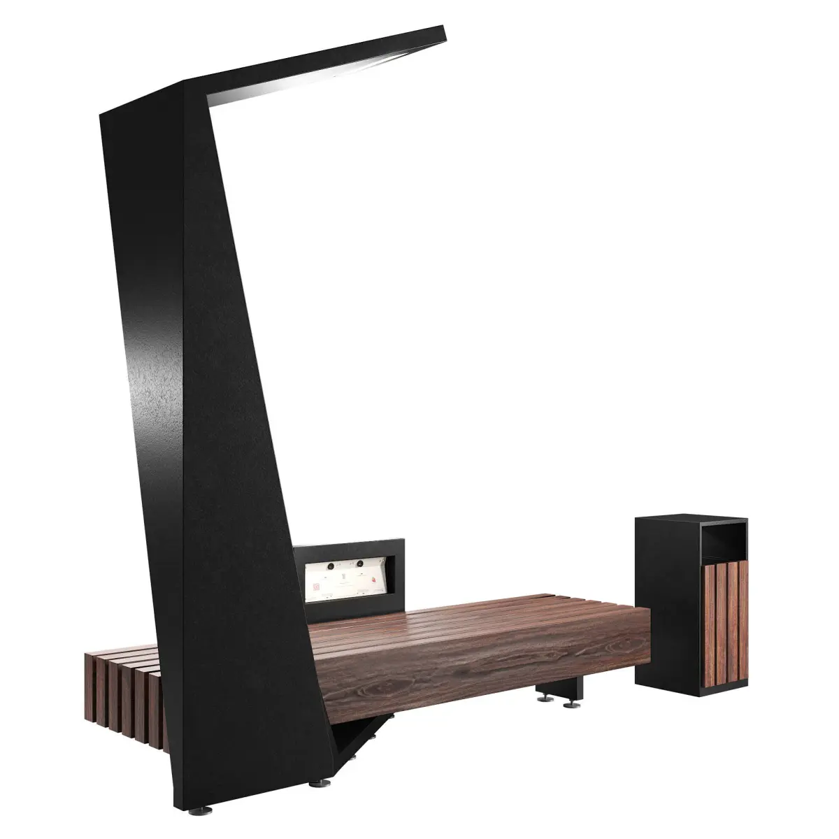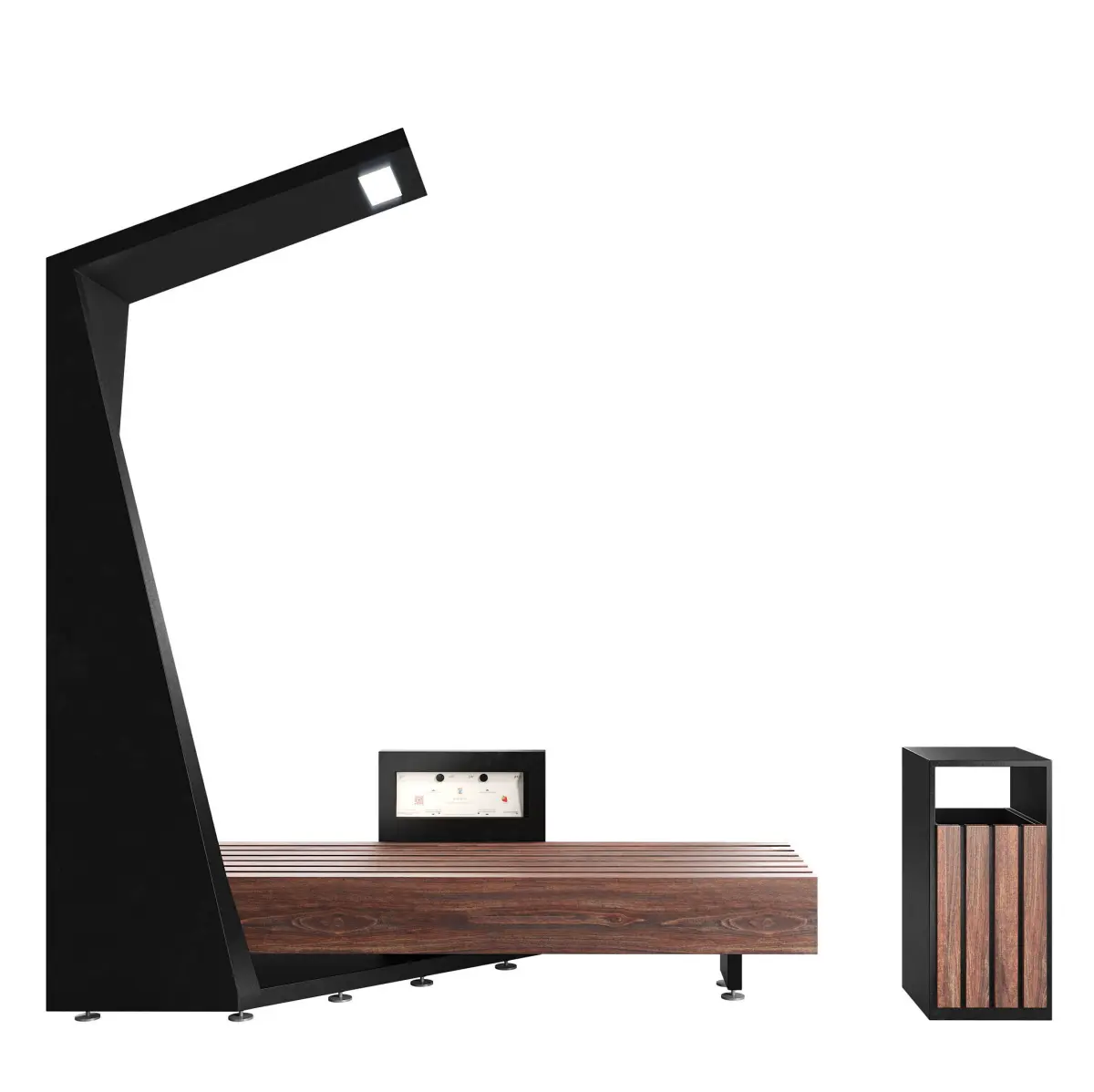 Site - https://landmarkstreetfurniture.com/products/solar-smart-bench-steel-wrap/This is one of the variations of this bench, so it does not 100% match the photo on the website.