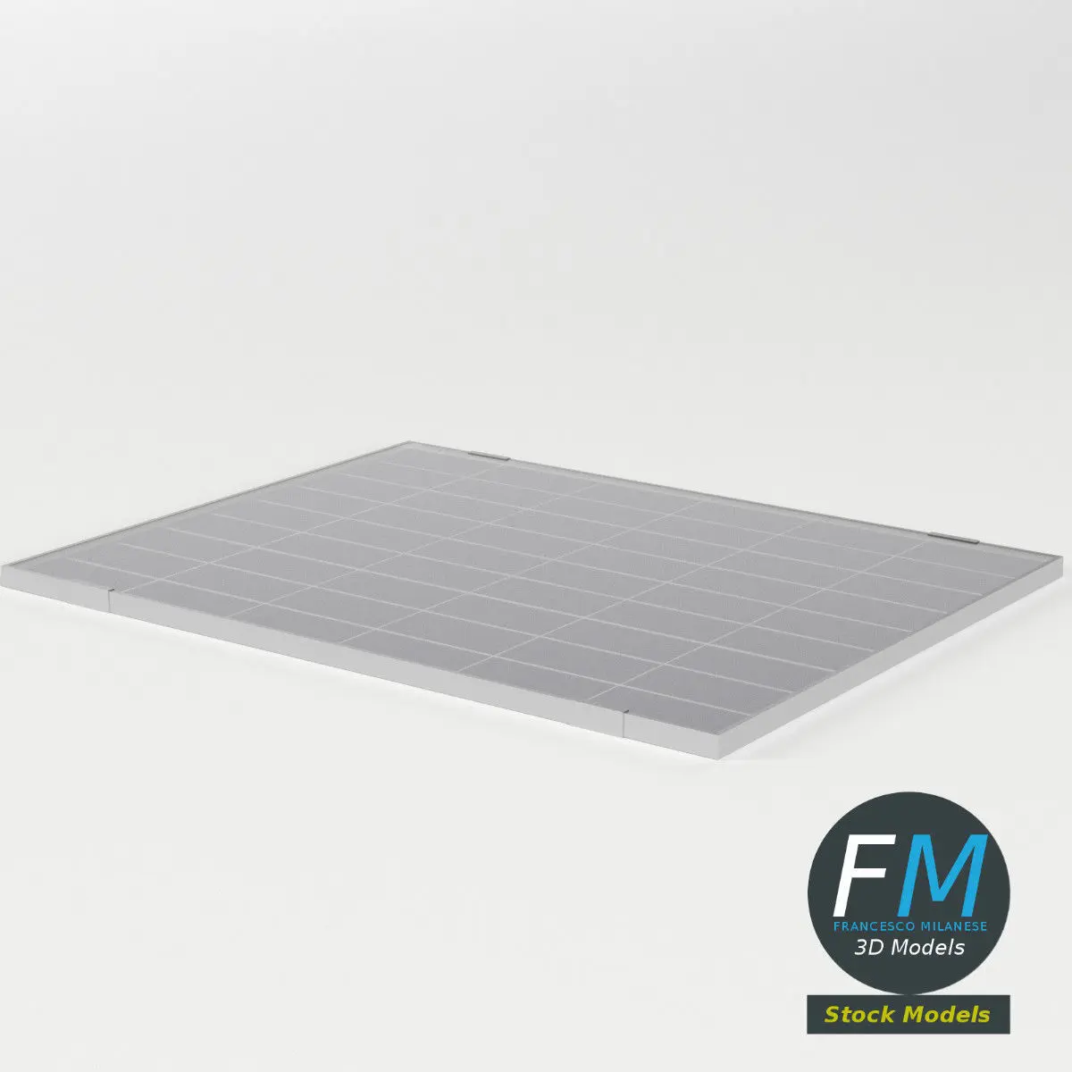 A solar panel module 3D Model; 2 objects (panel, glass), each one with its own non overlapping UV Layout map, Material and PBR Textures set. Production-ready 3D Model, with PBR materials, textures, and non overlapping UV Layout map provided in the package.