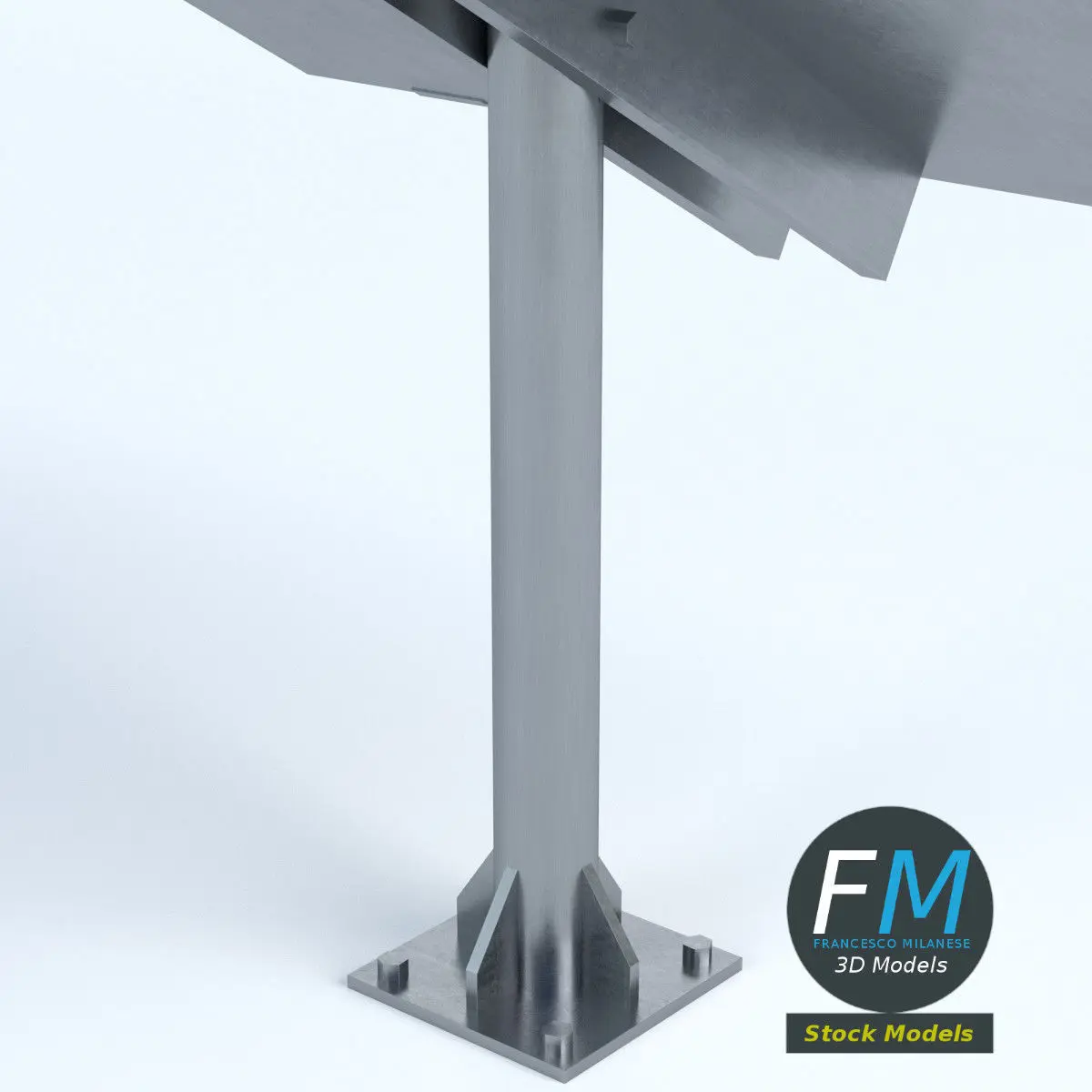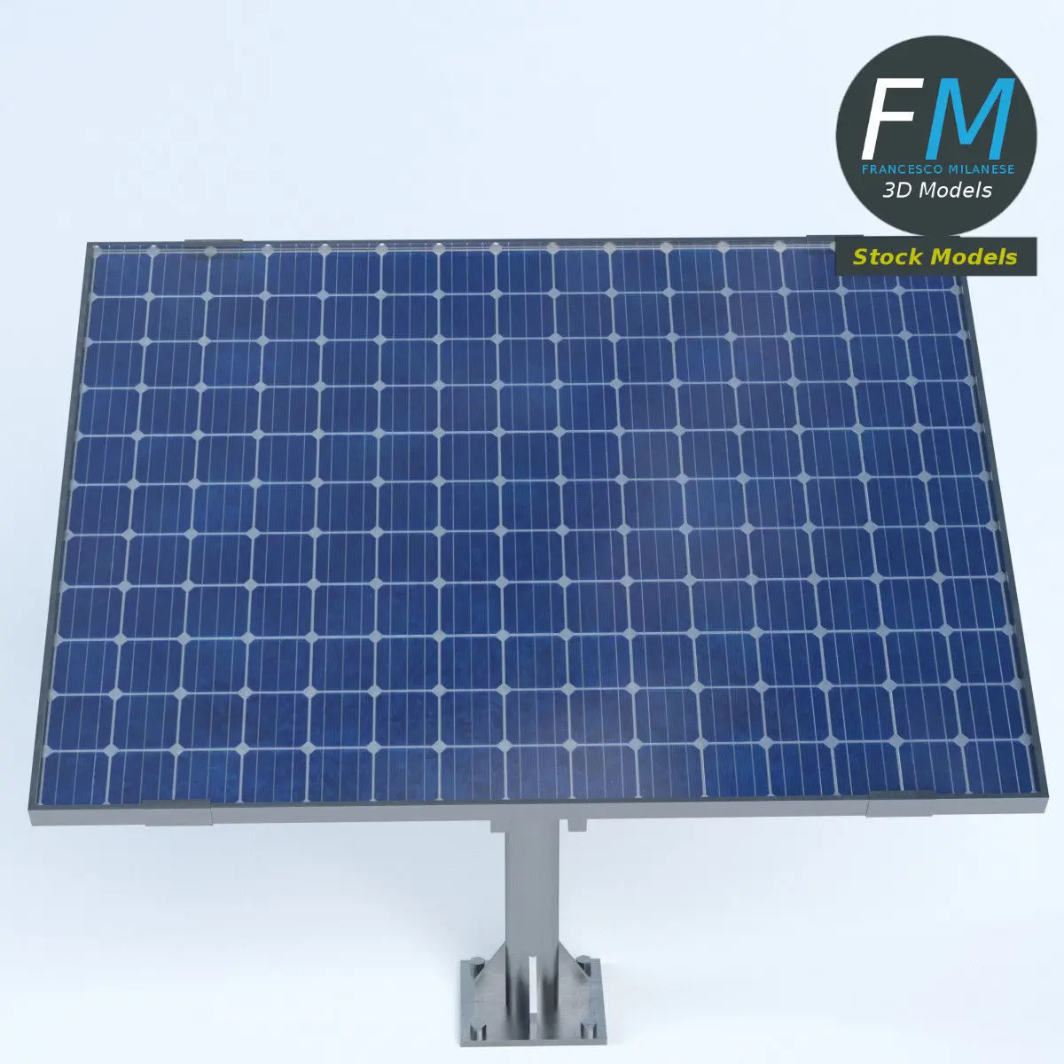 Solar panel on pole stand 3D Model. 3 individual objects (pole stand, solar panel frame, glass cover), each one with its own non overlapping UV Layout map, Material and PBR Textures set. Production-ready 3D Model, with PBR materials, textures, non overlapping UV Layout map provided in the package.Quads only geometries (no tris/ngons).Easily customizable: UV unwrapped geometries, so you can create new Textures (or modify the existing ones) using the UV Layout maps provided in the package (as png with alpha).Each Object, Material or Texture provided in the package has a unique, meaningful name.Made in Blender 3D 2.80 (Cycles / Eevee materials) then exported to OBJ and FBX; materials and textures made in Substance Painter, exported for PBR, V-Ray, Unity, Unreal.PROMO IMAGES: the first image has been rendered in Cycles (or Eevee) for Blender 3D 2.8x; in particular, you can find 11+ promo images in this description: