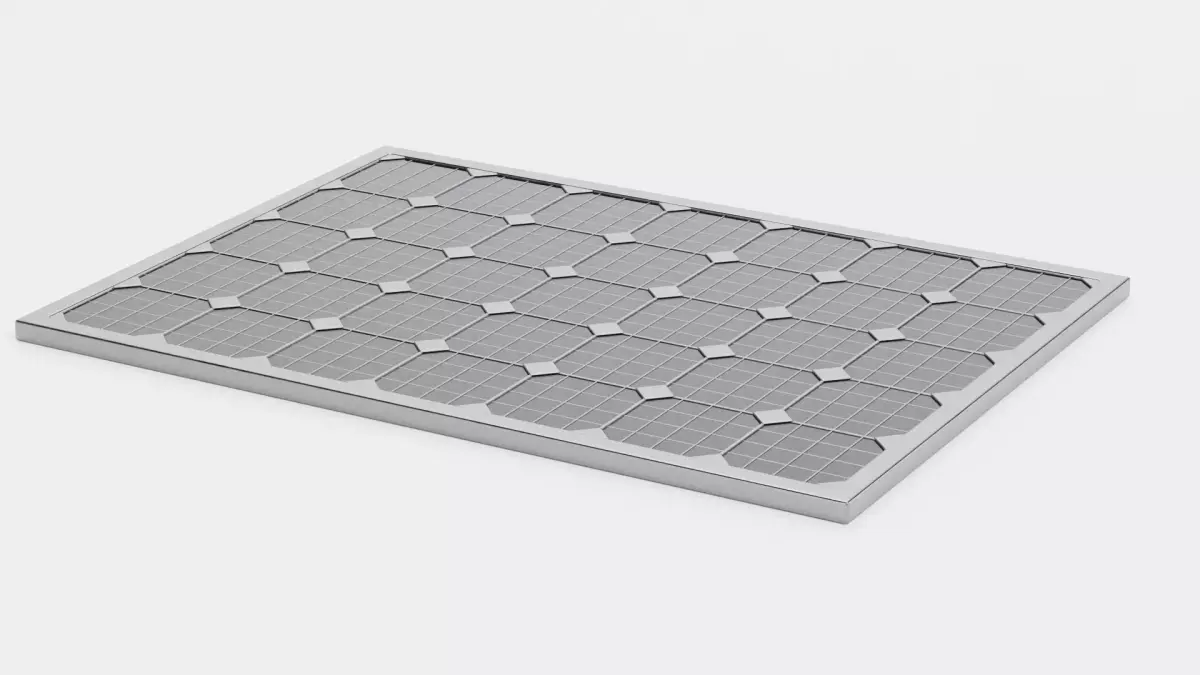 A photorealistic 3D model of a single monocrystalline solar panel plate. The asset showcases highly accurate surface detail, reflective panels, and a metallic frame, capturing the visual characteristics of real-world photovoltaic panels. Its neutral, standalone design makes it suitable for integration into solar arrays, architectural renders, or product-focused visualizations.