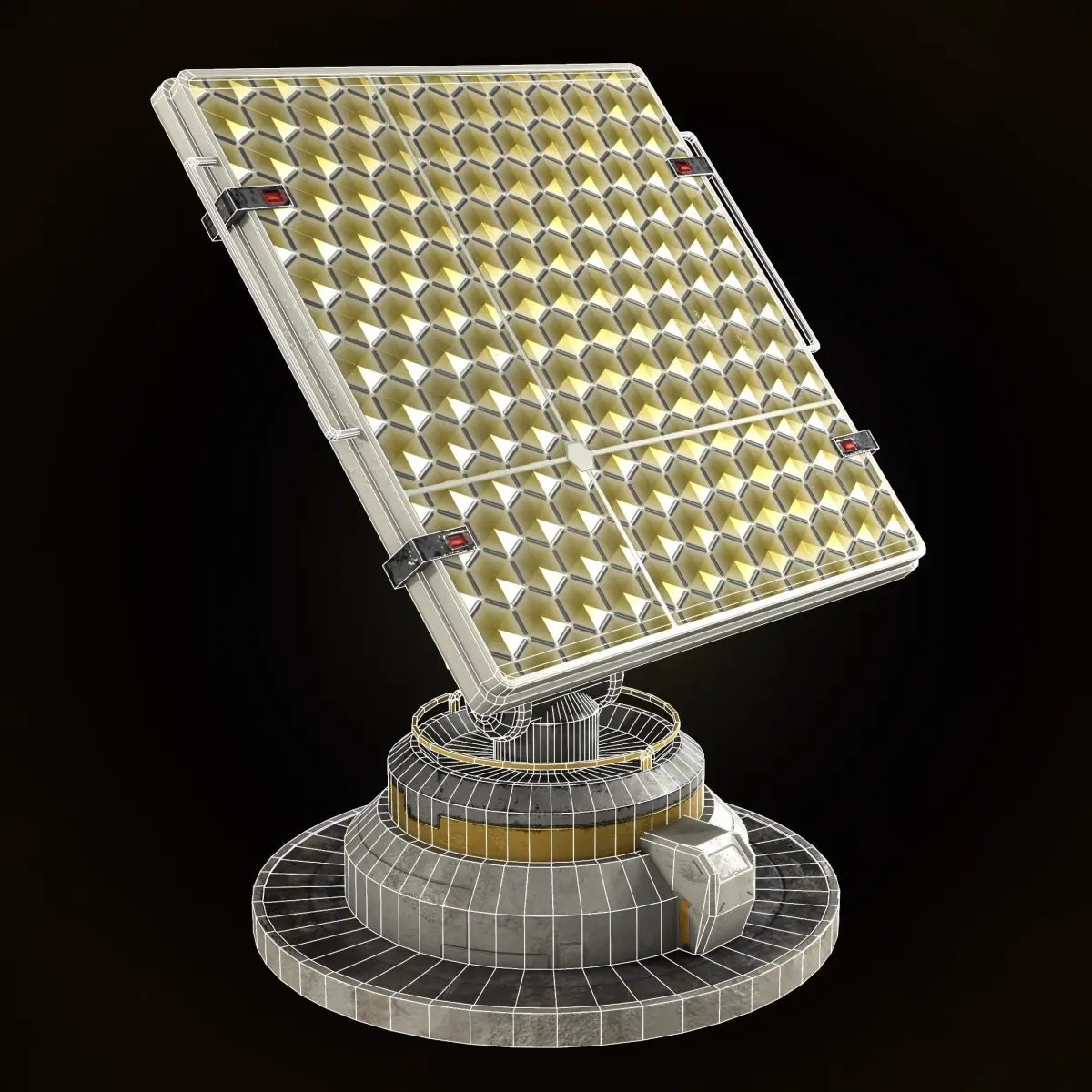 Low-poly model of a solar panel in si-fi style. Optimized for mobile platforms. Assets include Unity URP compatible textures. Suitable for both foreground and background.