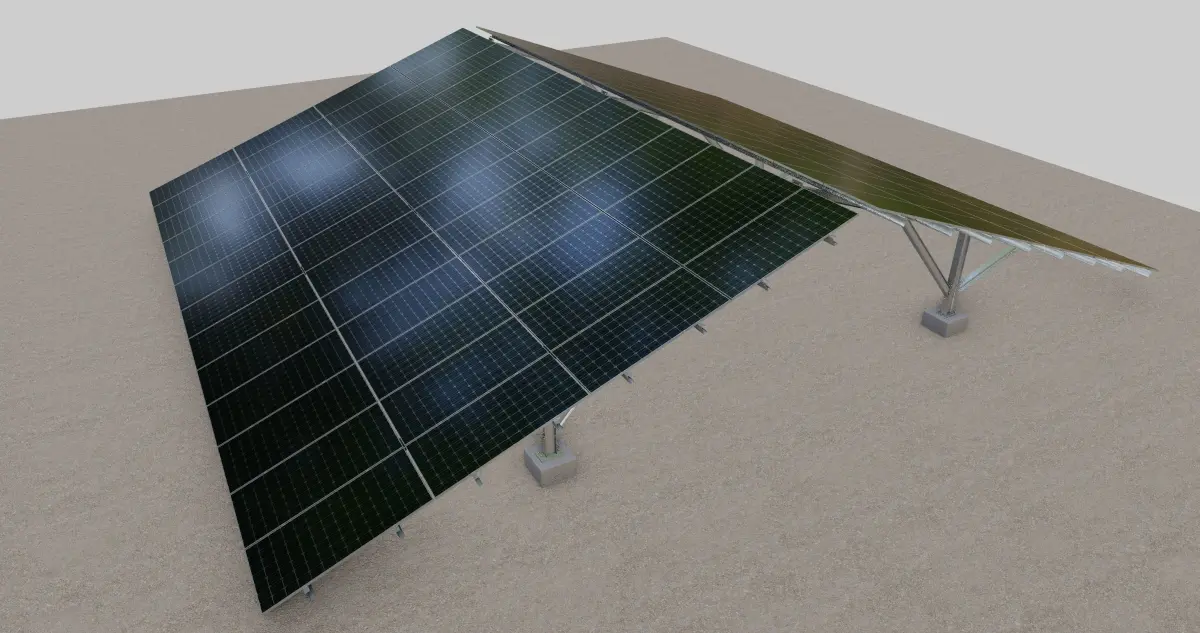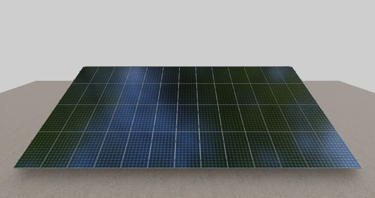 1 solar panel steel construction produces 57,2 kWp power in 1 hour