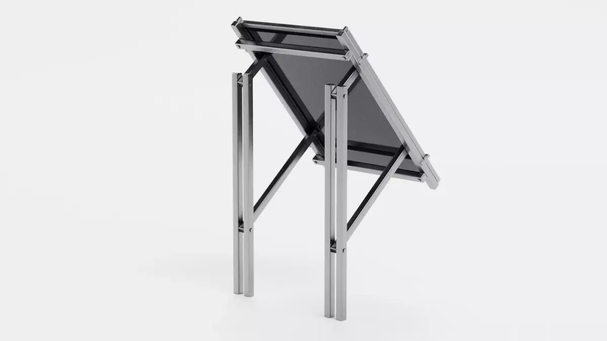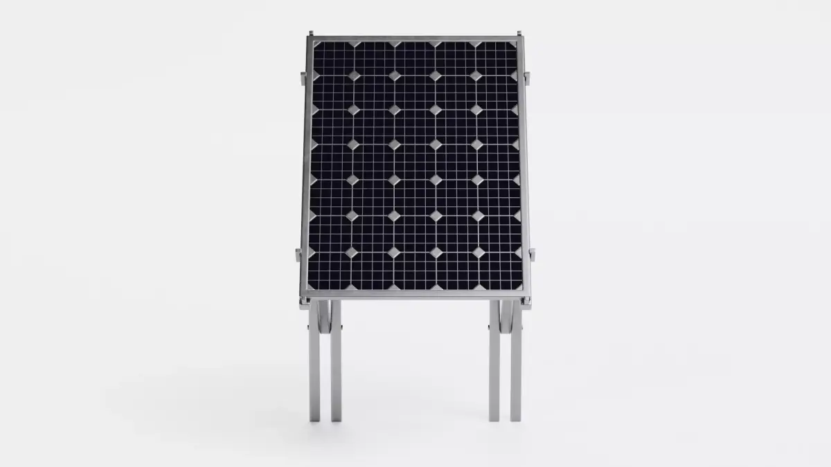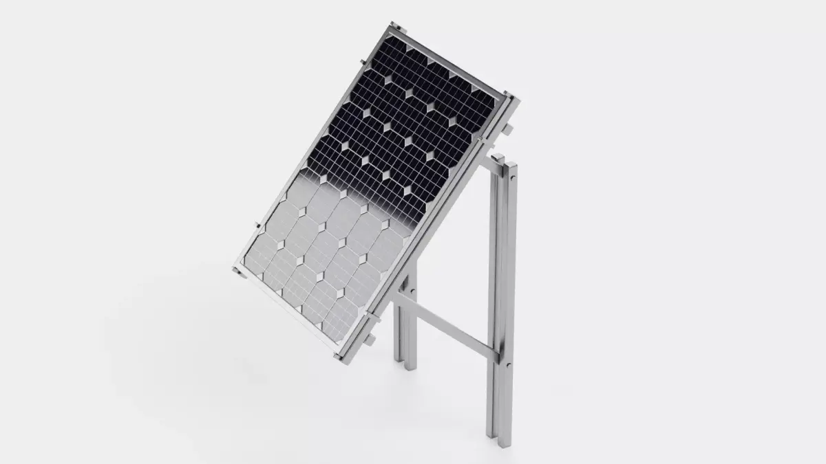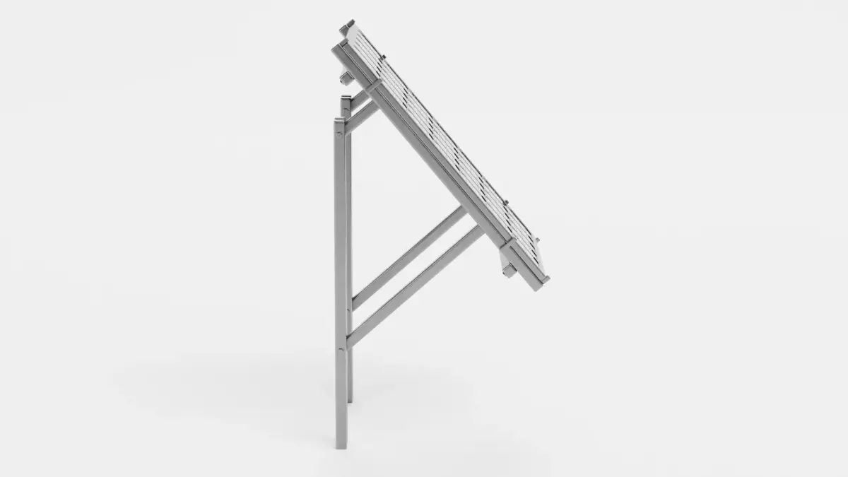 A detailed 3D model of a single monocrystalline solar panel mounted on a tilted metal bracket. The design emphasizes accurate cell layout, realistic reflective surfaces, and precise panel geometry. The bracket replicating real-world installation angles, and can be integrated as a standalone element or combined into modular photovoltaic arrays. This versatile model is suitable for architectural visualizations, renewable energy simulations, and product rendering projects.