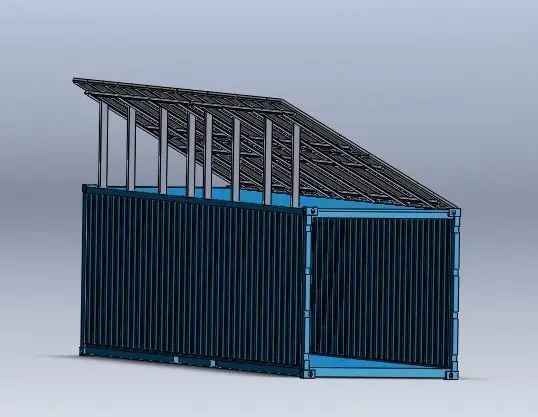 Solar panels fixed to a 40 foot shipping container
