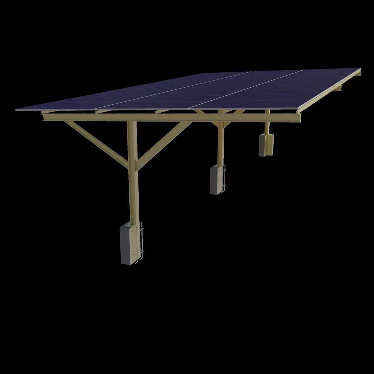 This Solar-Ready Carport 3D model is perfect for game and video assets! This meticulously designed carport boasts detailed base reinforcement and structural member dimensions, including concrete and iron rod specifications. Elevate your project with this aesthetically pleasing and highly realistic asset, combining both beauty and structural integrity.
