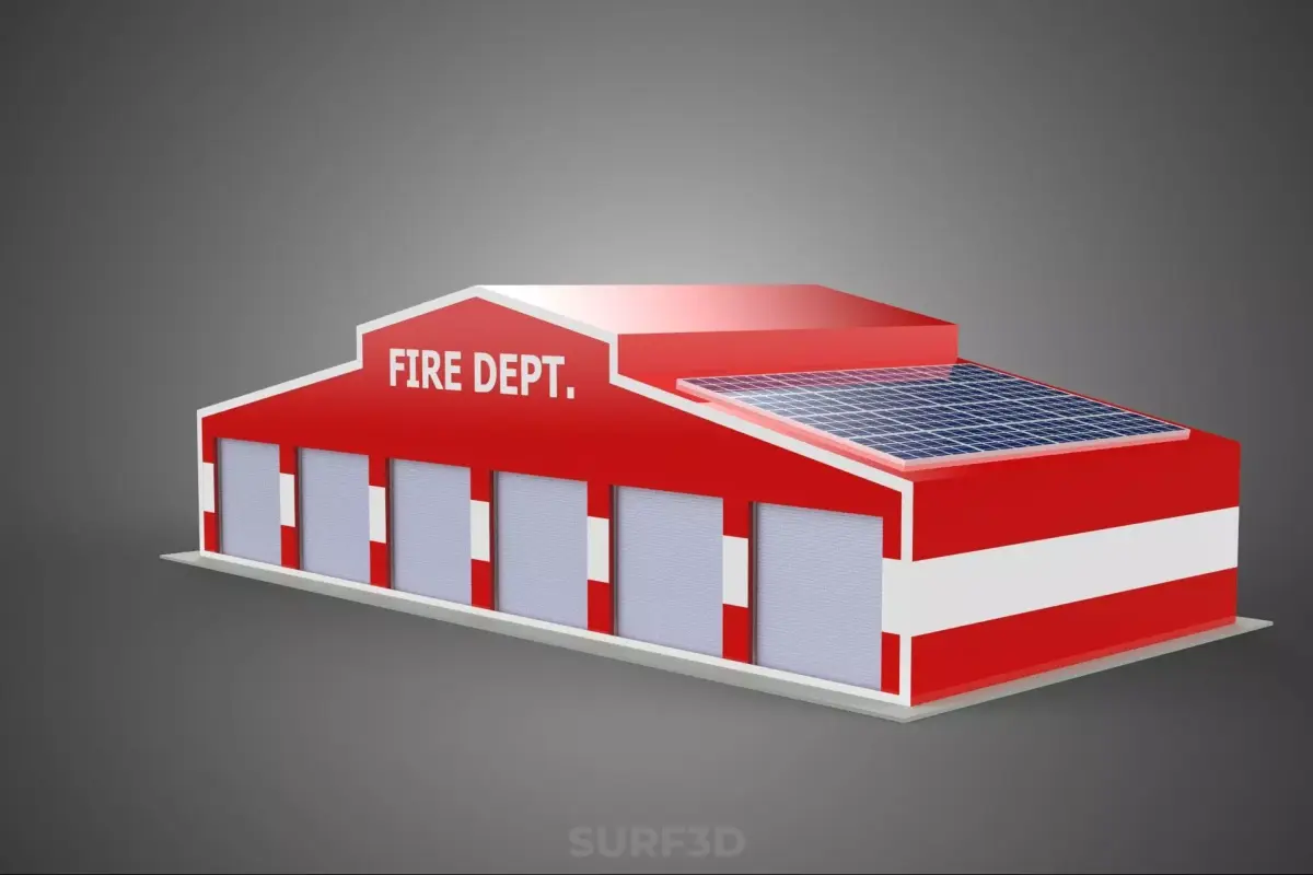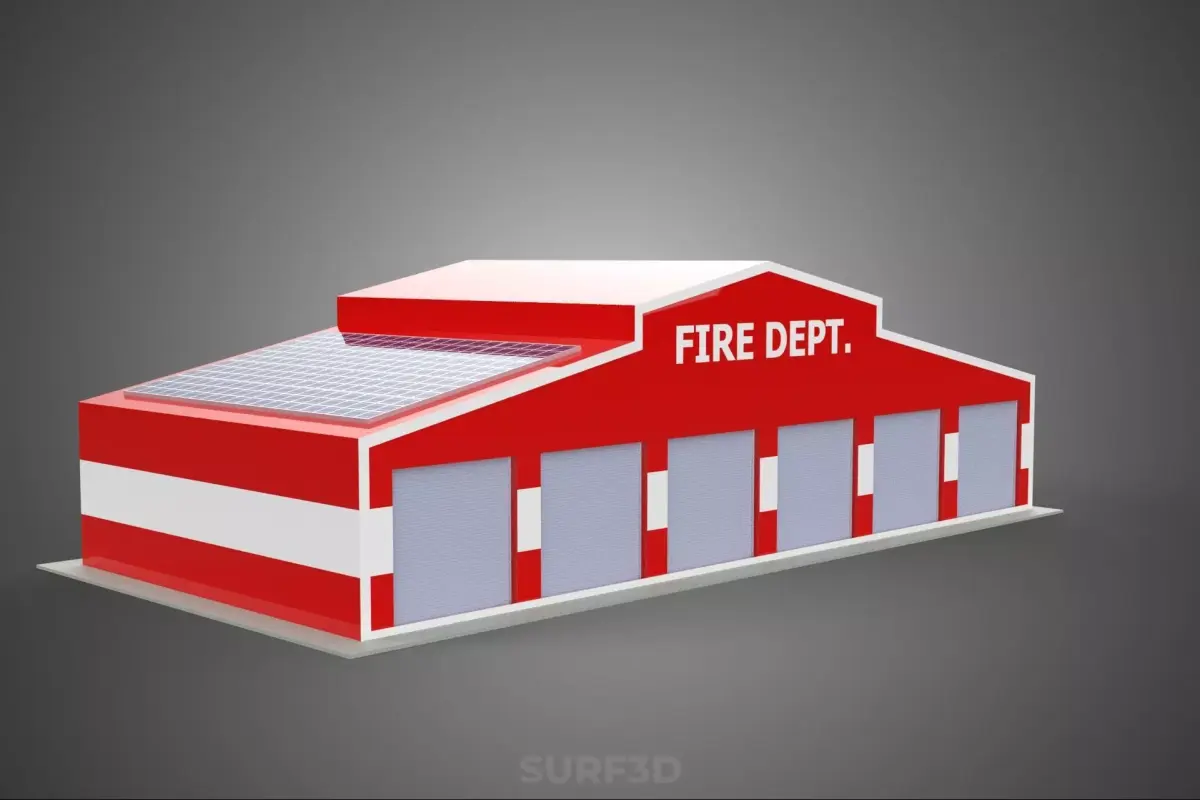KEYWORDS: Firehouse, Fire Station, Solar Roof, Photovoltaic, Energy Efficiency, Fire Engine, Apparatus Bay, Emergency Services, Public Safety, Municipal Infrastructure, Sustainable Building, Green Technology, Rapid Response, Fire Department, Vehicle Garage, Apparatus Bay Door, Renewable Energy, Resilience, Net Metering, Pumper Truck, Architectural Design, Public Works, Emergency Management, Operational Base, LEED Certification, Carbon Reduction, Utility Costs, Public Infrastructure Planning, Vehicle Egress, Station Design.