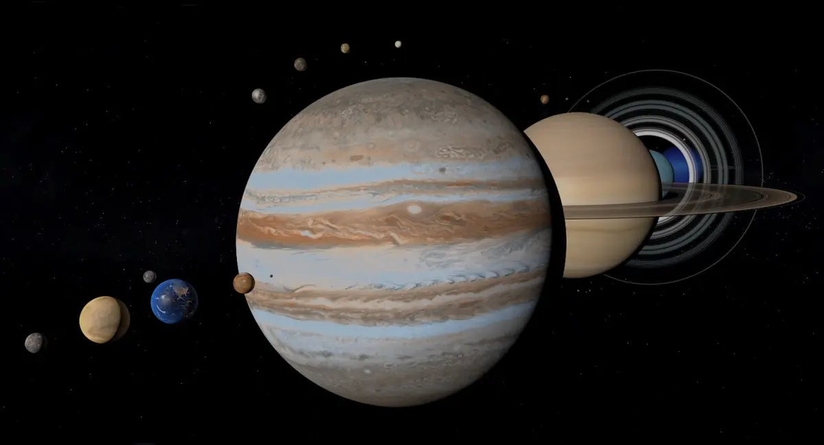 - 13 moons (Moon, Ganimedes, Europe, Io, Callisto, Dione, Enceladus, Iapetus, Mimas, Rhea, Tethys, Titan, Triton)