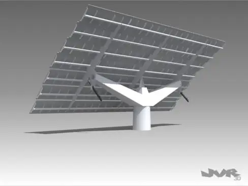 Tower with 7 rows of solar panels and 22 modules each one. Measures (length-width-height): 1806-710-862 (with modules angle 45º)