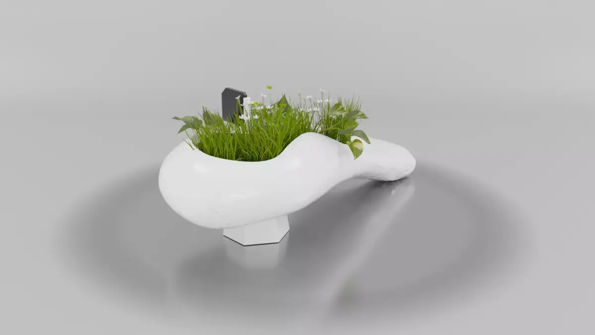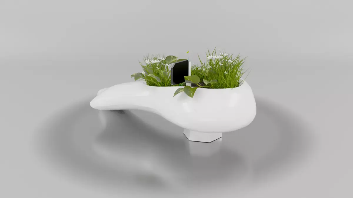 Product Overview:This asset is a multifunctional furniture piece featuring a fluid, ergonomic seating area that transitions into a lush planting bed. It’s equipped with a smart monitoring system to maintain the integrated greenery, making it a living piece of furniture.