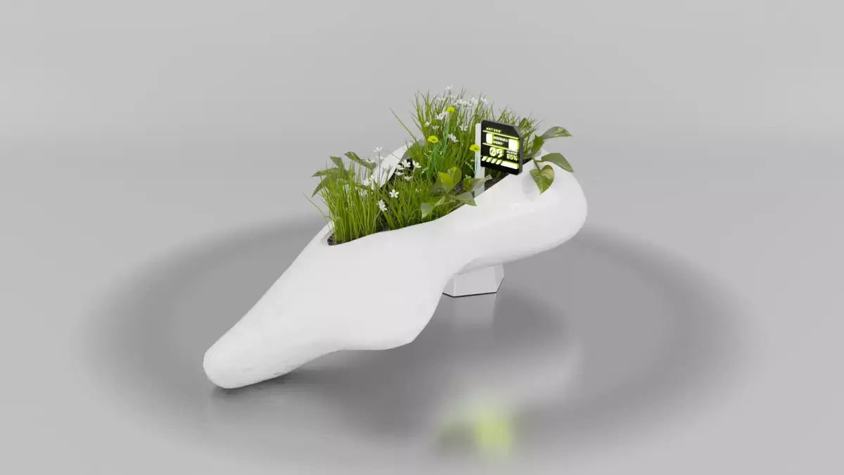 Smart Monitoring System: Features an integrated digital display that tracks plant health and environmental data.
