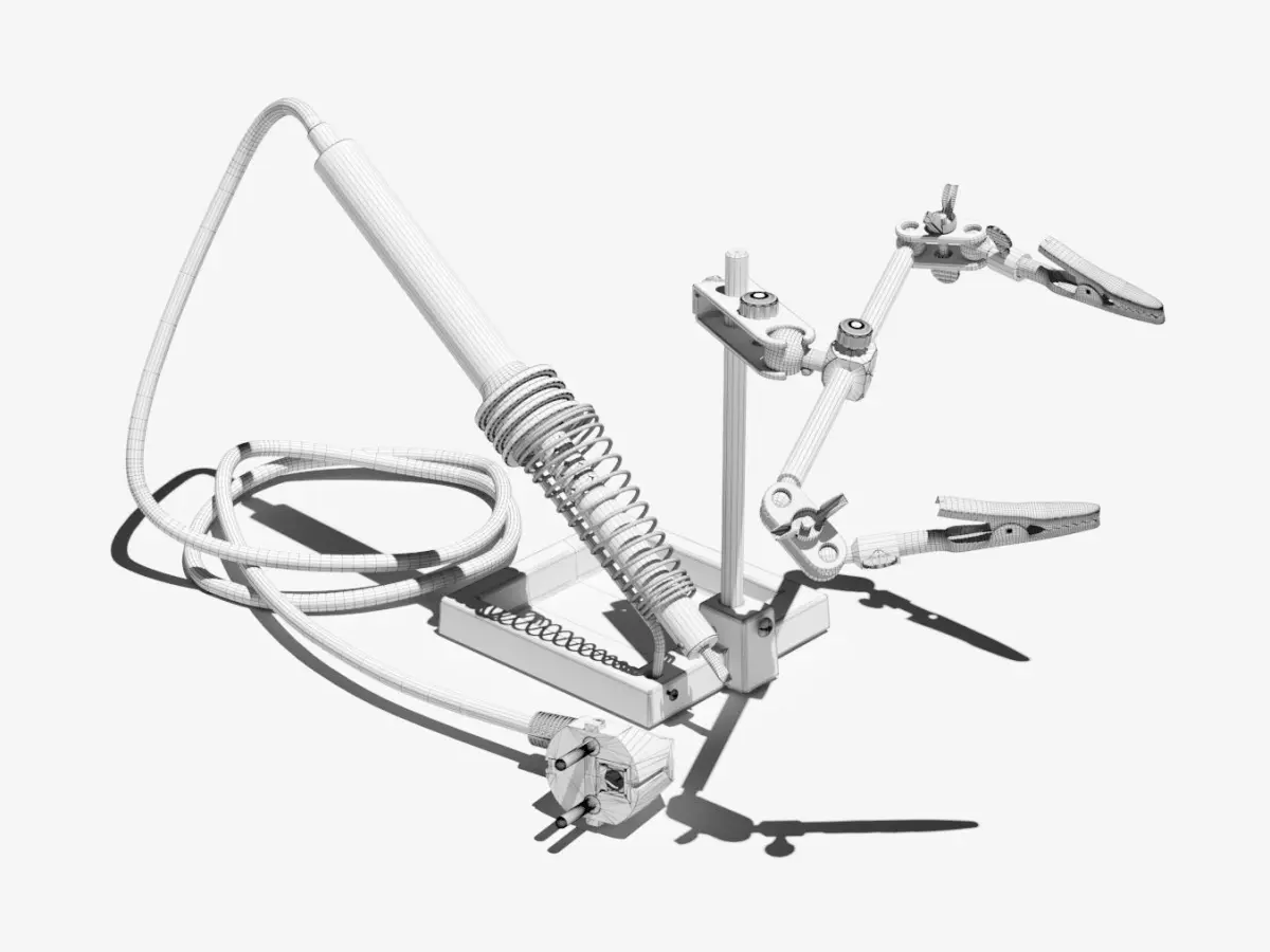 A mid-poly model of a soldering iron and a rack for it. Created for mental ray renderer, set up for realistic render. The pivots of joints set for easy tweaking.