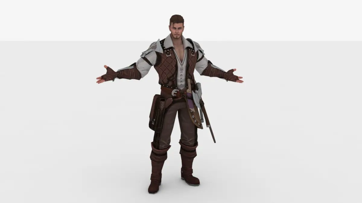 The pose of the model on the render images is an example and can be recreated using rig, it is not initially included into the product. All Assets in the scene are highly detailed and can be used standalone in any of your projects.