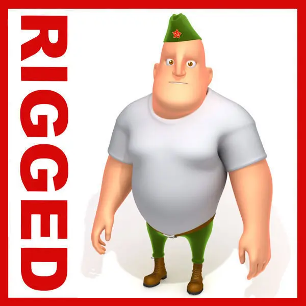 Features:-Cute Cartoon soldier, ready for close up and HD renders.-High quality polygonal model, correctly scaled for an accurate representation of the original object.-Model’s resolutions are optimized for polygon efficiency. (In 3ds Max, the Meshsmooth function can be used to increase mesh resolution if necessary.)-Created with 3DSMax 2013 but available in a lower version and OBJClean mesh edge loopsOnly quadObjects, Materials and Textures use descriptive and unique namesScene objects organized by layers.-All colors can be easily modified.-Model is textured with all materials applied.-No cleaning up necessary—just drop your models into the scene and start rendering.-No special plugin needed to open scene.-Ready for rendering in Mental Ray.-Rigged Biped 3ds max-File contains Tpose