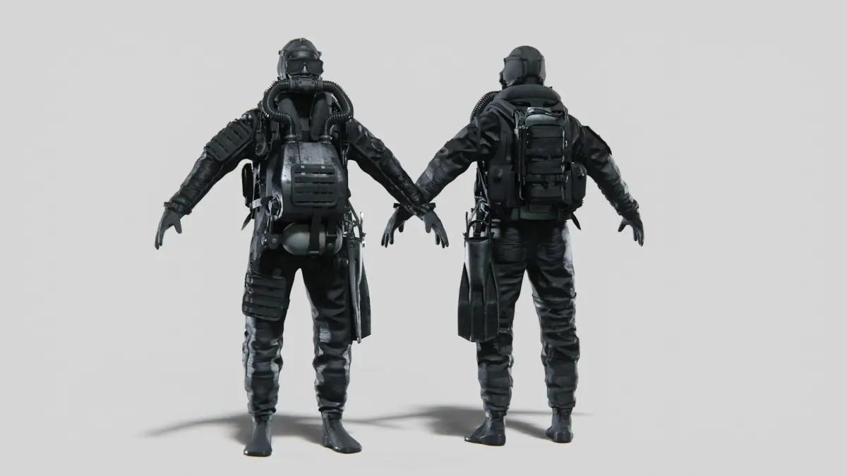 3D Modern Commando Diving drysuit modeled in high precision. Used in deep sea Special forces, Seals and Tactical operations. this is a mix between several references i found. this model has been accurately recreated in 3d High poly to keep every details.