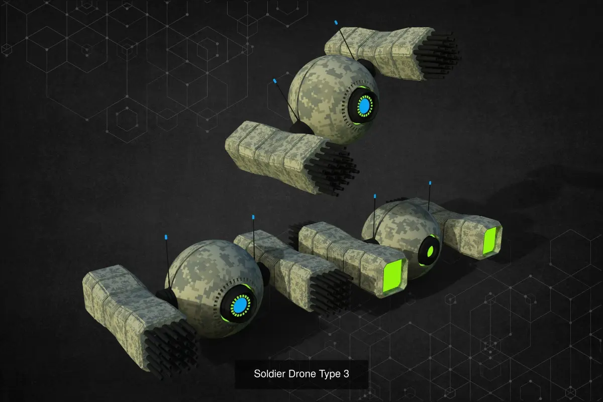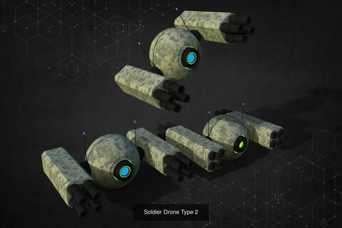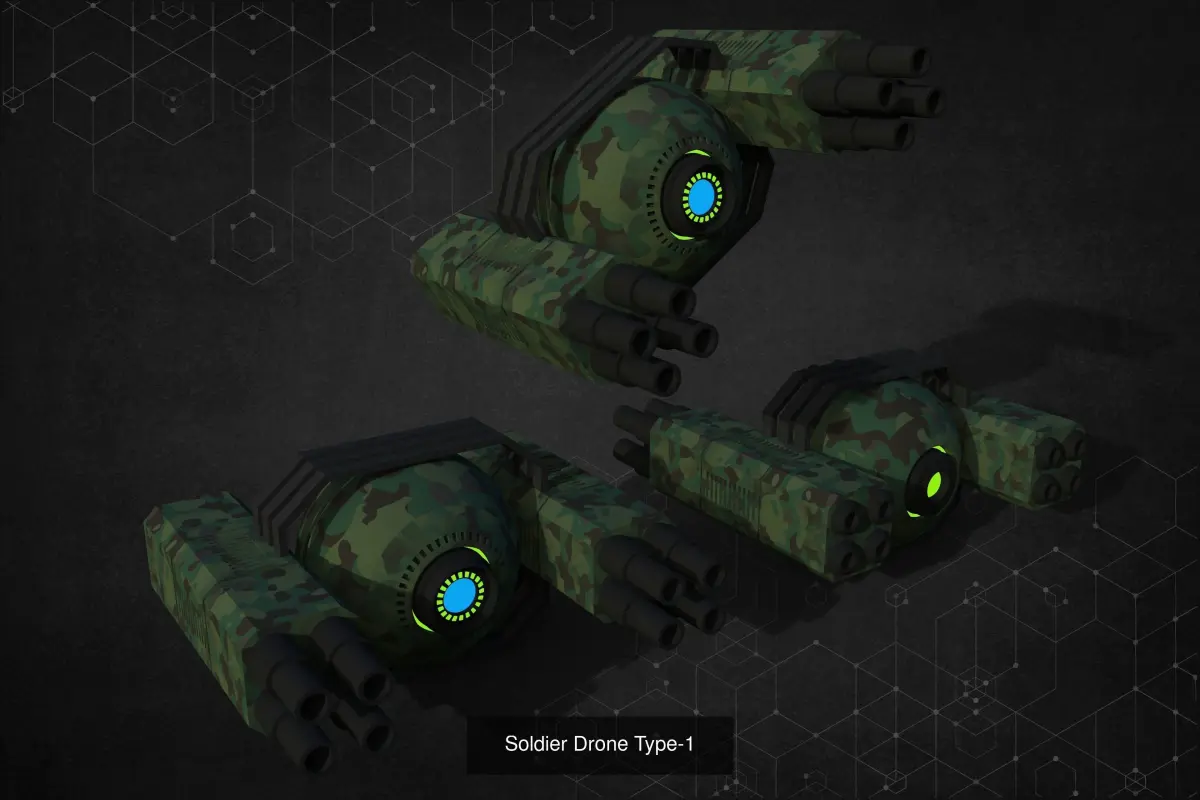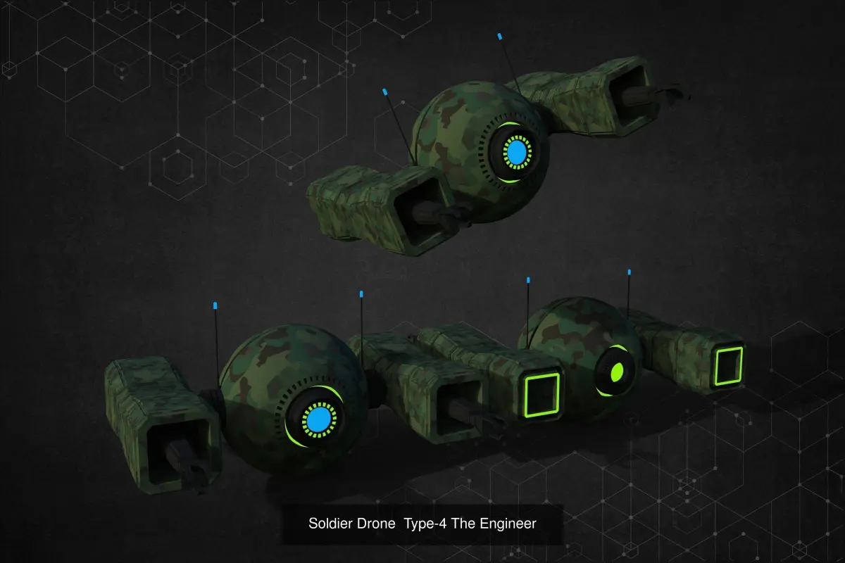 Soldier Drone unit pack is a collection of 5 army drones including one engineer and one medic unit.The attributes are given below