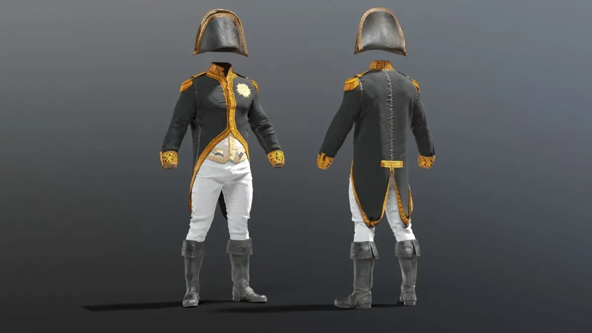 FRENCH NAPOLEON EMPEROR3D French napoleon soldier uniform and ceremonial uniform from the french empire modeled in high precision.this is a mix between several references i found. this model has been accurately recreated in 3d High poly to keep every details.