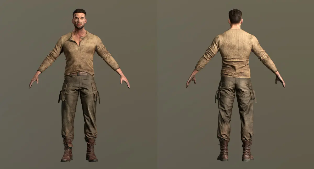 The character also was modeled in real-world scale. Height of character is 183 cm.