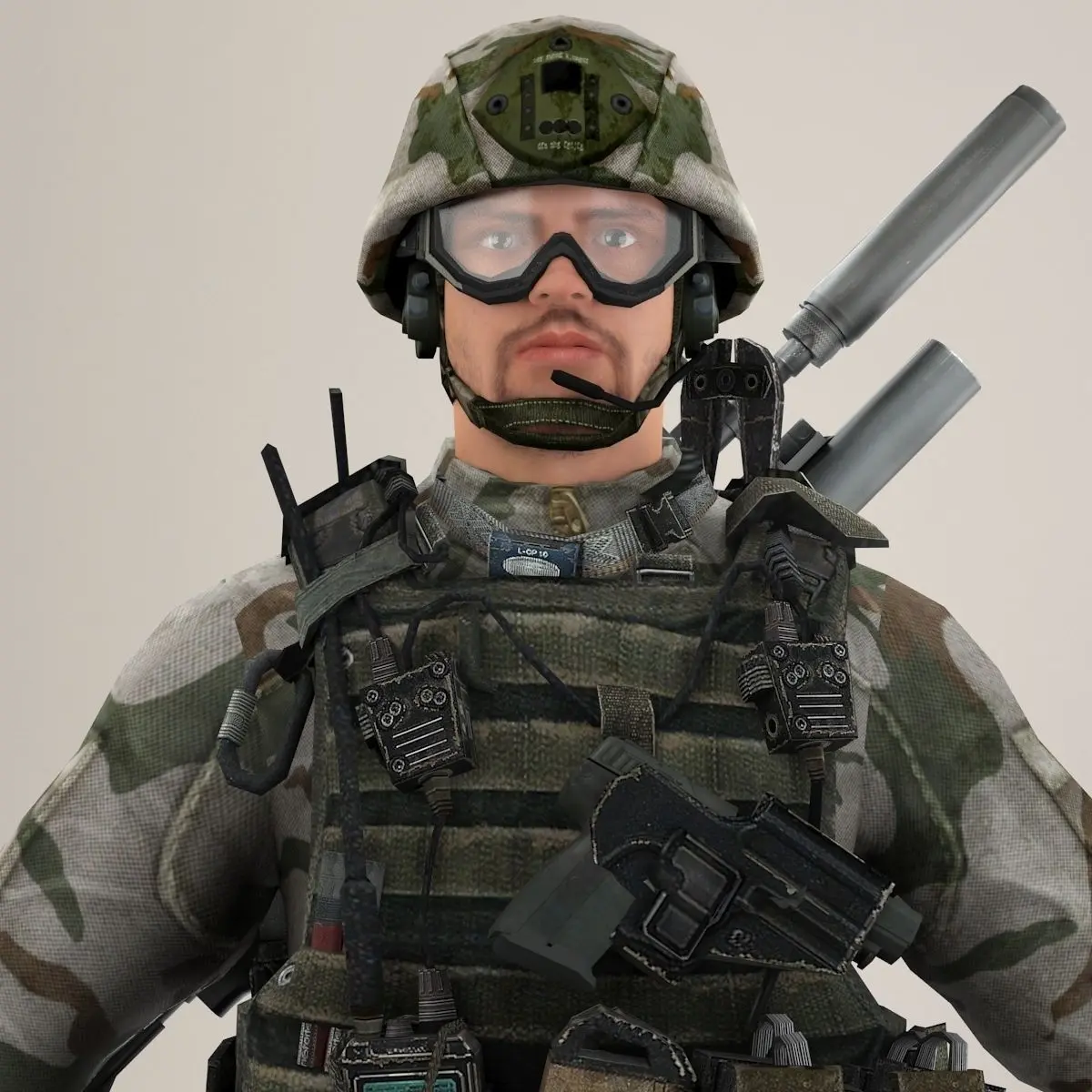 The high Quality polygonal 3d model of the Soldier Lite V1 named Jack (Rigged).