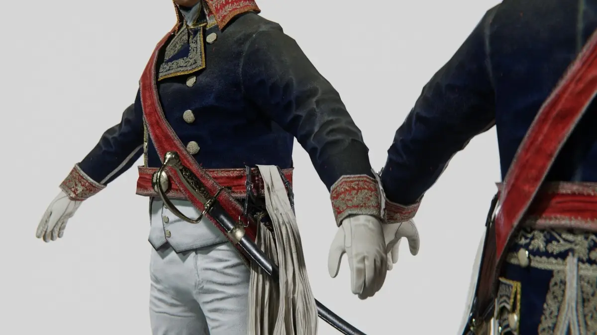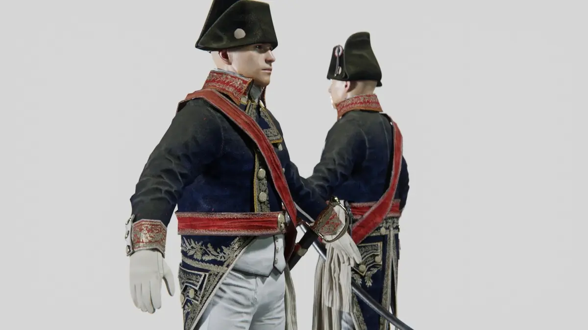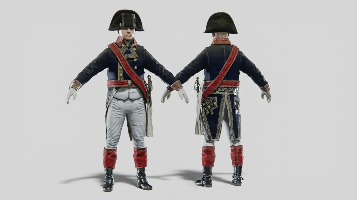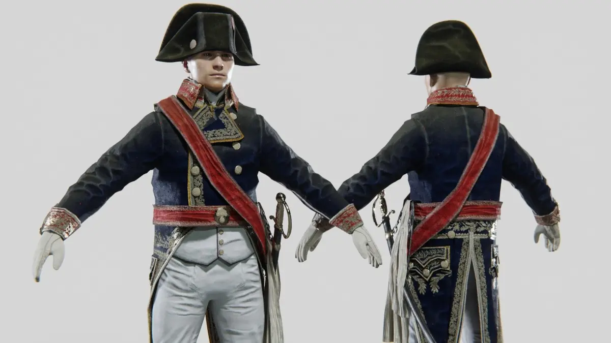 French Napoleonic Grande Armee General, high rank officer uniform from the empire period Marengo Battle ( marechal, general, colonel, lieutenant ) modeled in high precision and equiped with Decorative Coat, Gloves, Hat, General leather Boots and sword. this is a mix between several references i found. this model has been accurately recreated in 3d to keep every details.