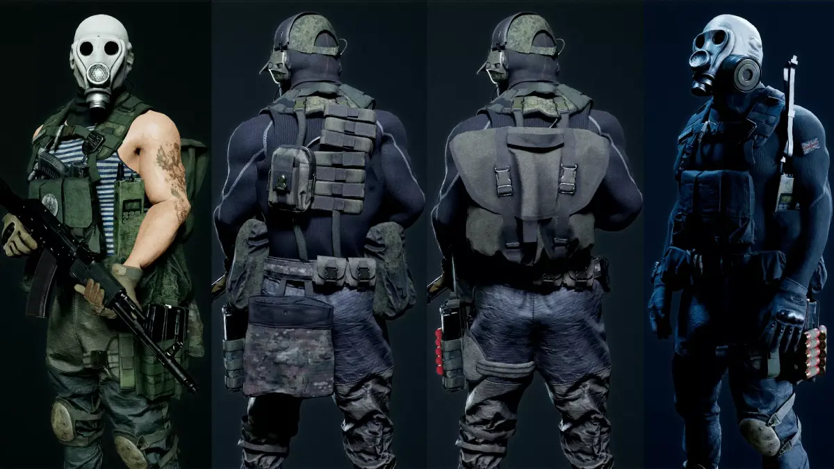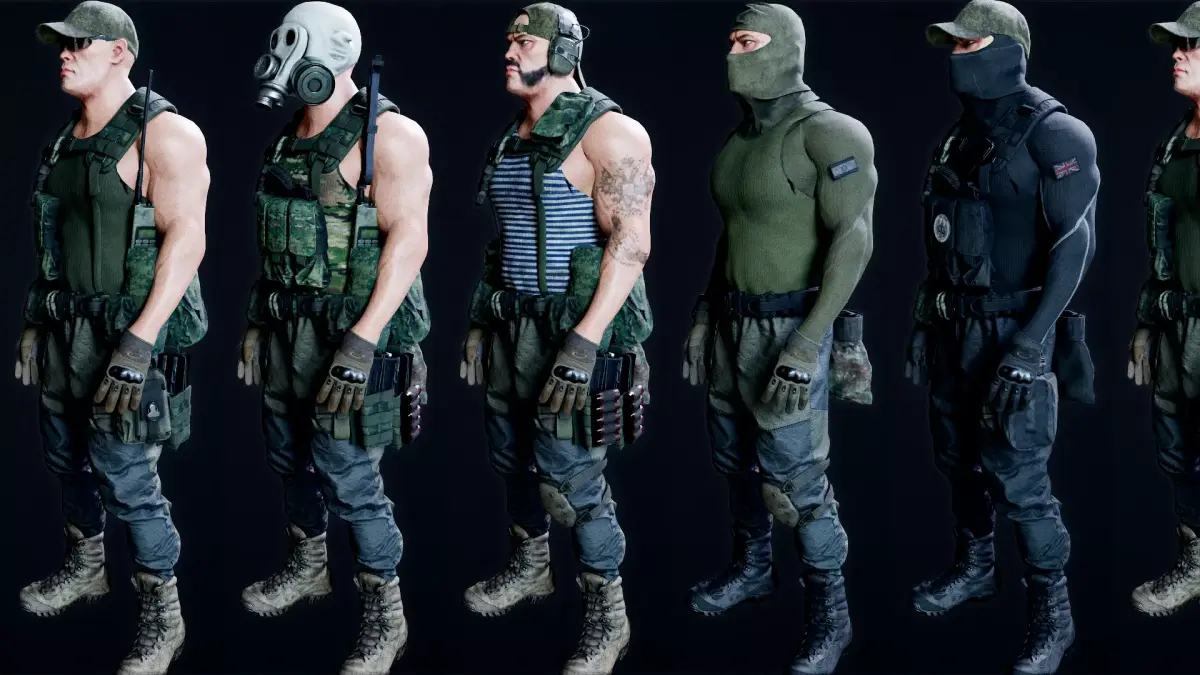Includes helmets, vests, pouches, tactical gear, armor plates, equipment, patches, and more — all interchangeable.