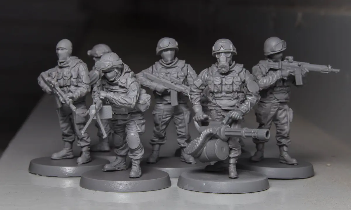 Soldier squad 28 mm scaleReady for printing in any SLA printerAdded multy part version - no supports