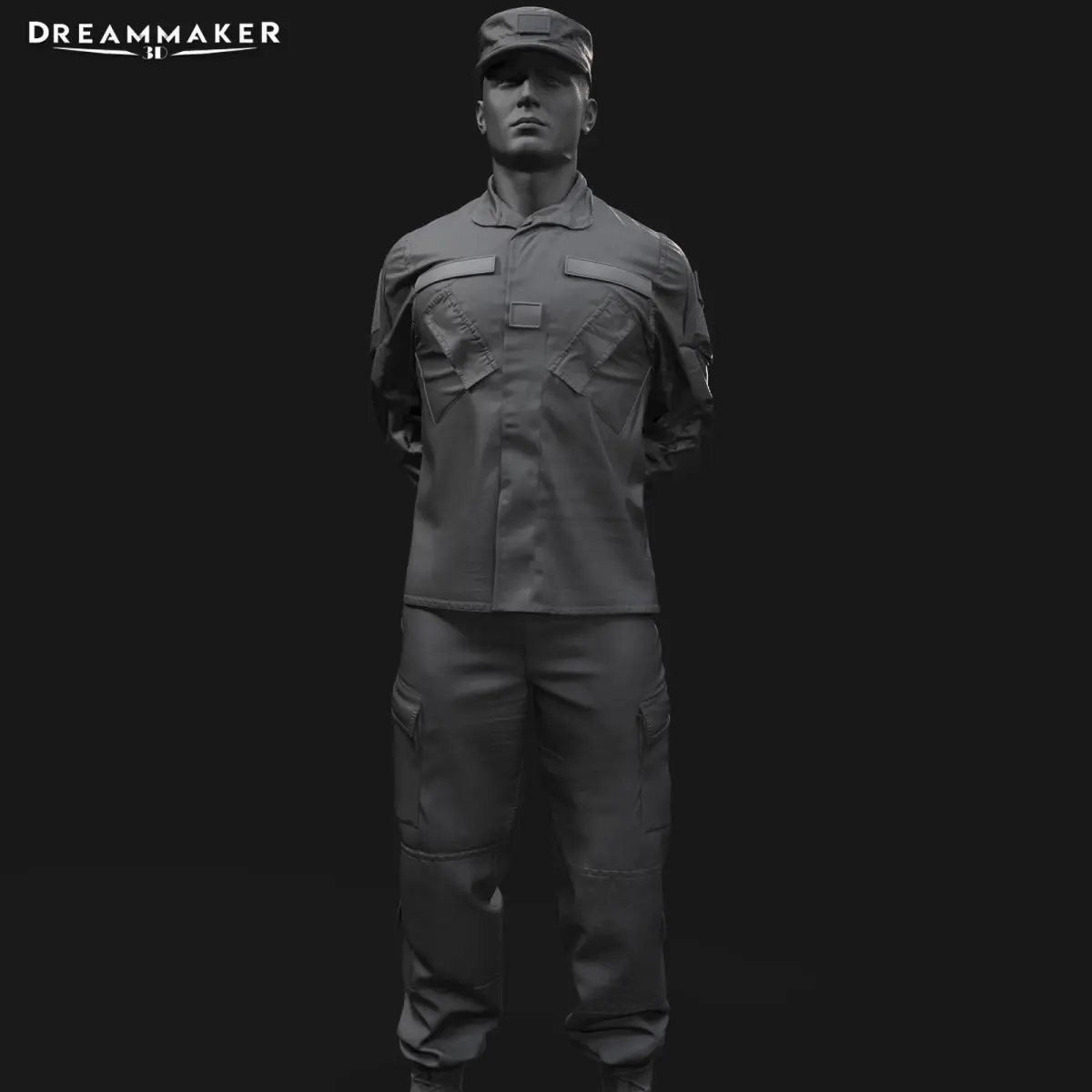 3d design of a soldier in multicam combat clothing for 3D printing.