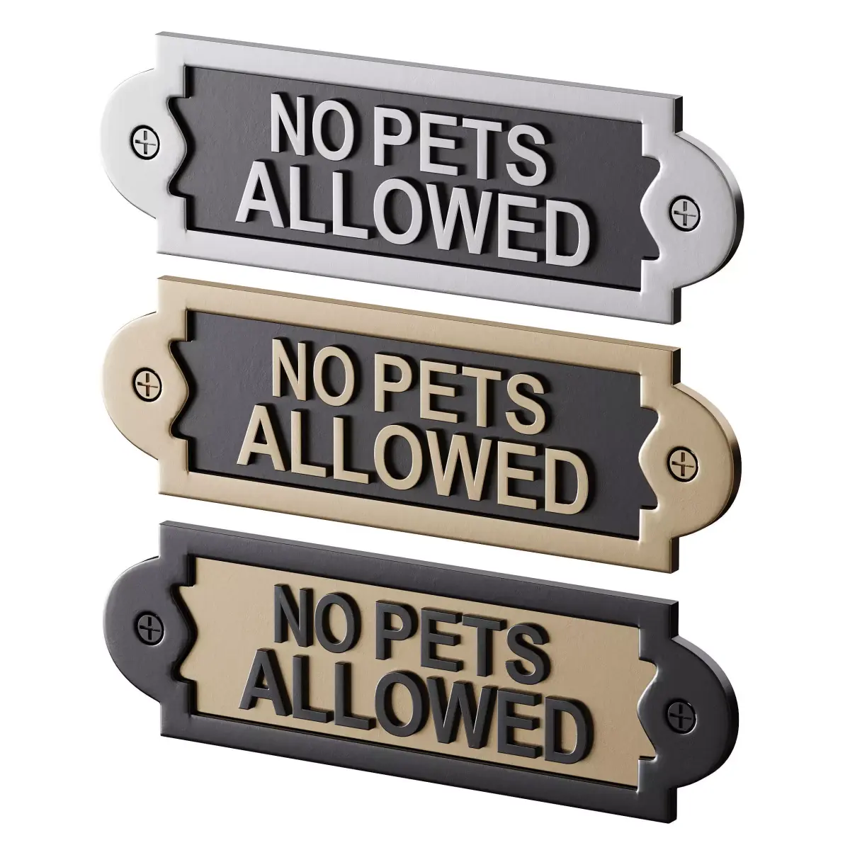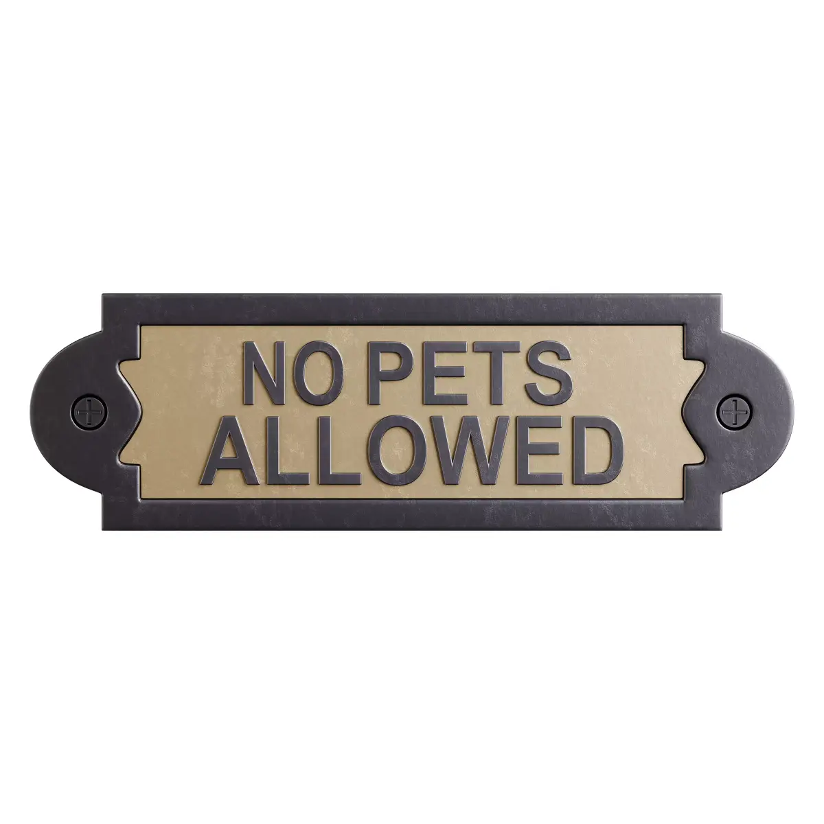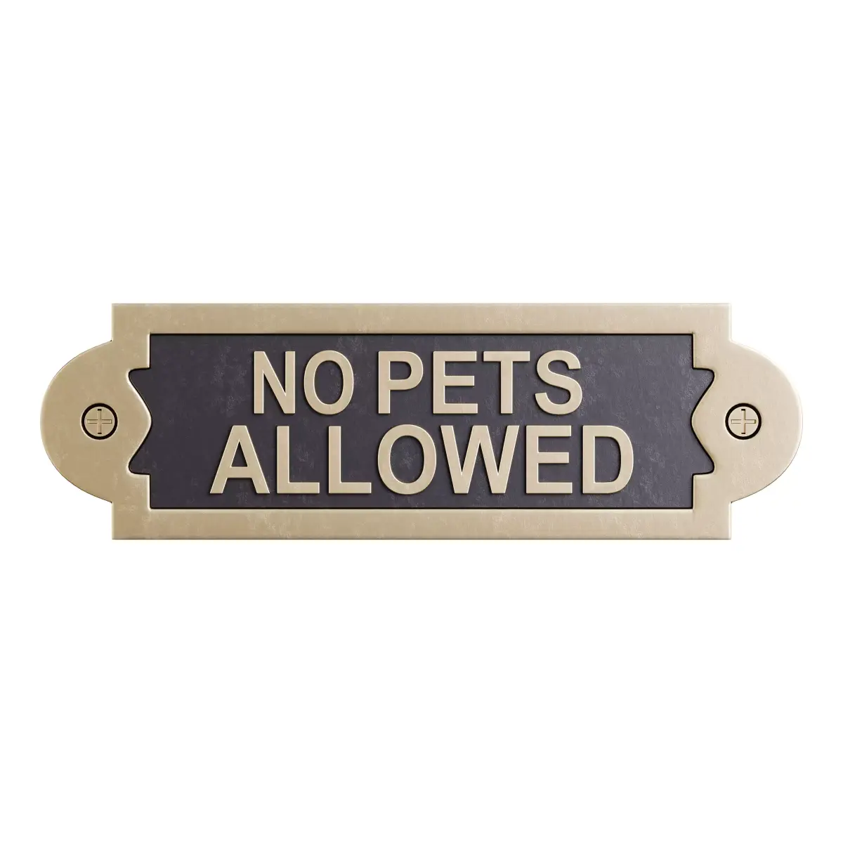 Tags: brass sign, no pets, no pets allowed, door sign, vintage plaque, engraved sign, warning sign, architectural signage, outdoor sign, public notice, brass plaque, antique signage, realistic sign, solid brass, outdoor decor, commercial signage, entryway sign, decorative metal, formal signage, sign modeling, brass object, classic sign, informational plaque, architectural detail, door accessory, realistic rendering, 3D brass sign, polished brass, visual signboard, ornate sign, heritage decor
