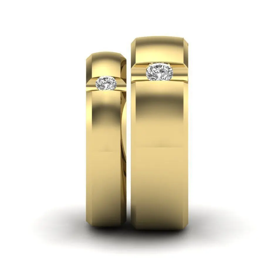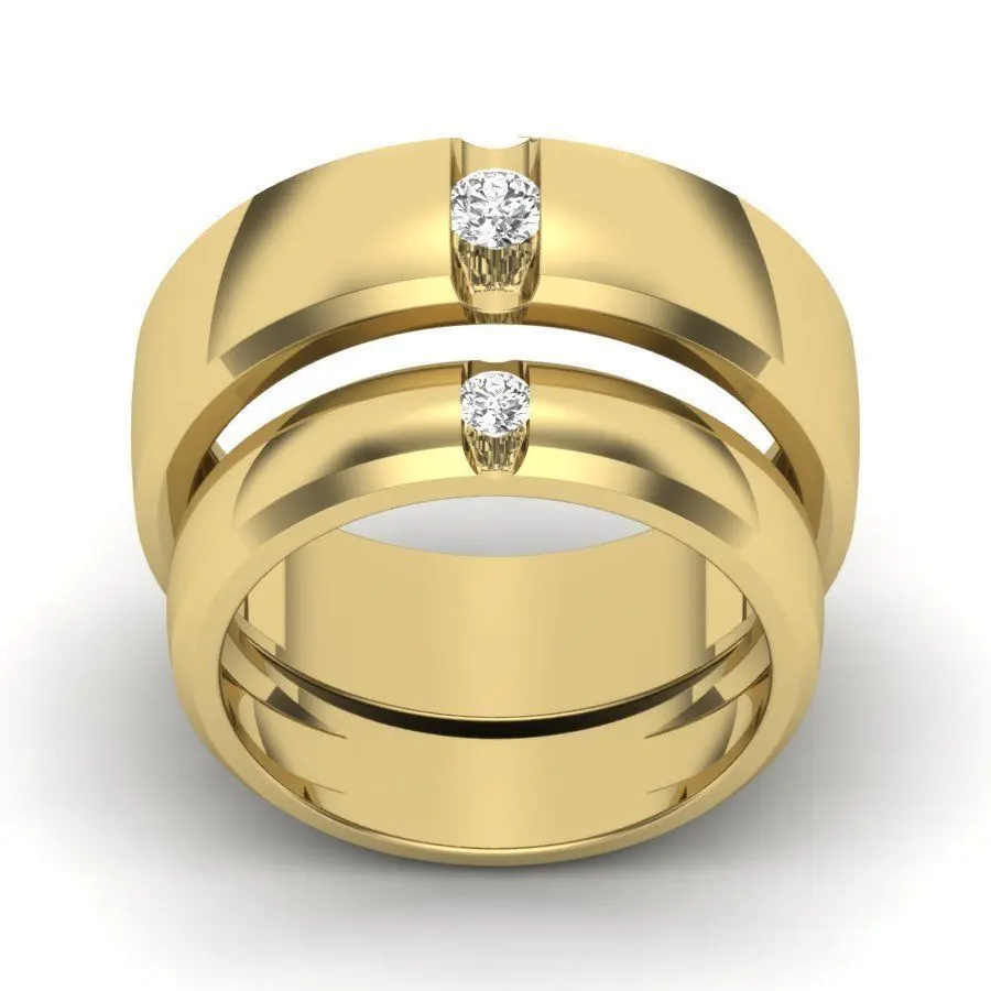 Solitaire Couple Band Ring 3dm stl render detail 3D print model