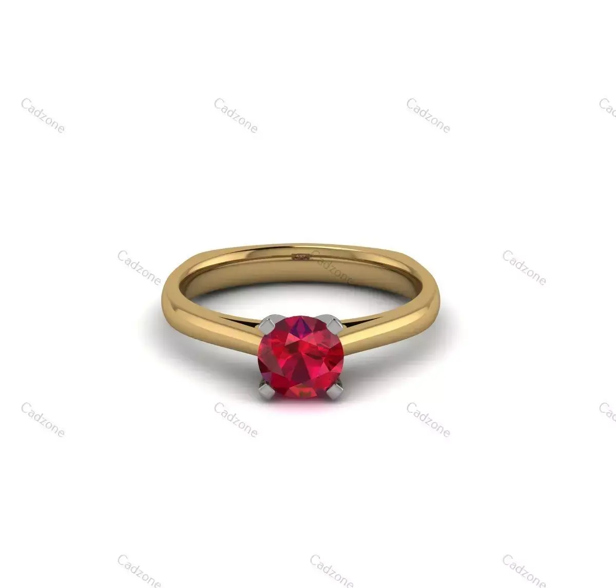 This timeless 3D CAD model features a classic solitaire design with a round brilliant-cut gemstone elegantly set in a four-prong head. The ring combines the warmth of 14KT yellow gold with a contrasting white-metal prong setting, enhancing the brilliance of the center stone. Its refined proportions and clean lines make it suitable for both engagement and fine jewelry collections.