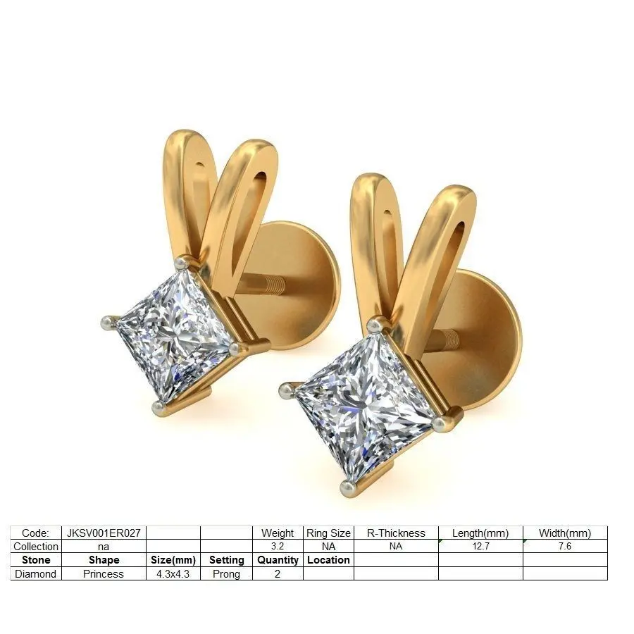 Home Catalog Solitaire Princess Diamond Earrings 3Dm STL OBJ Render Details 3D print model