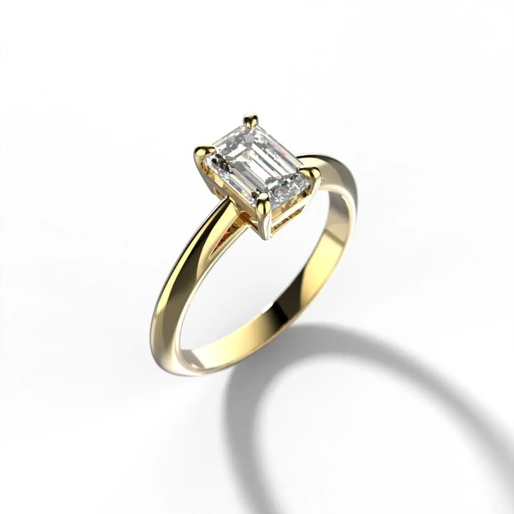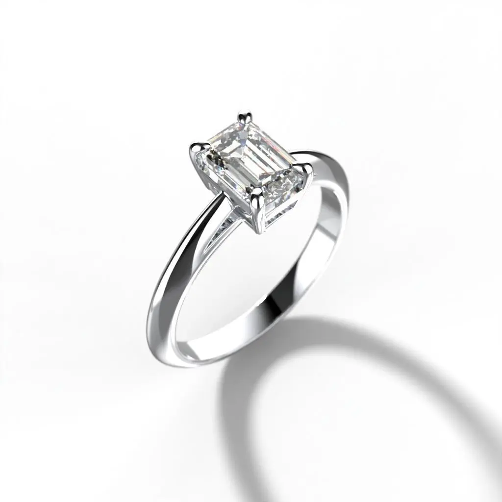 Classic ring with emerald cut diamond3d print model Size: 16.6mm diameter Gems: 1 emerald cut (7/5mm)Weight: White gold 14k -2.71gr