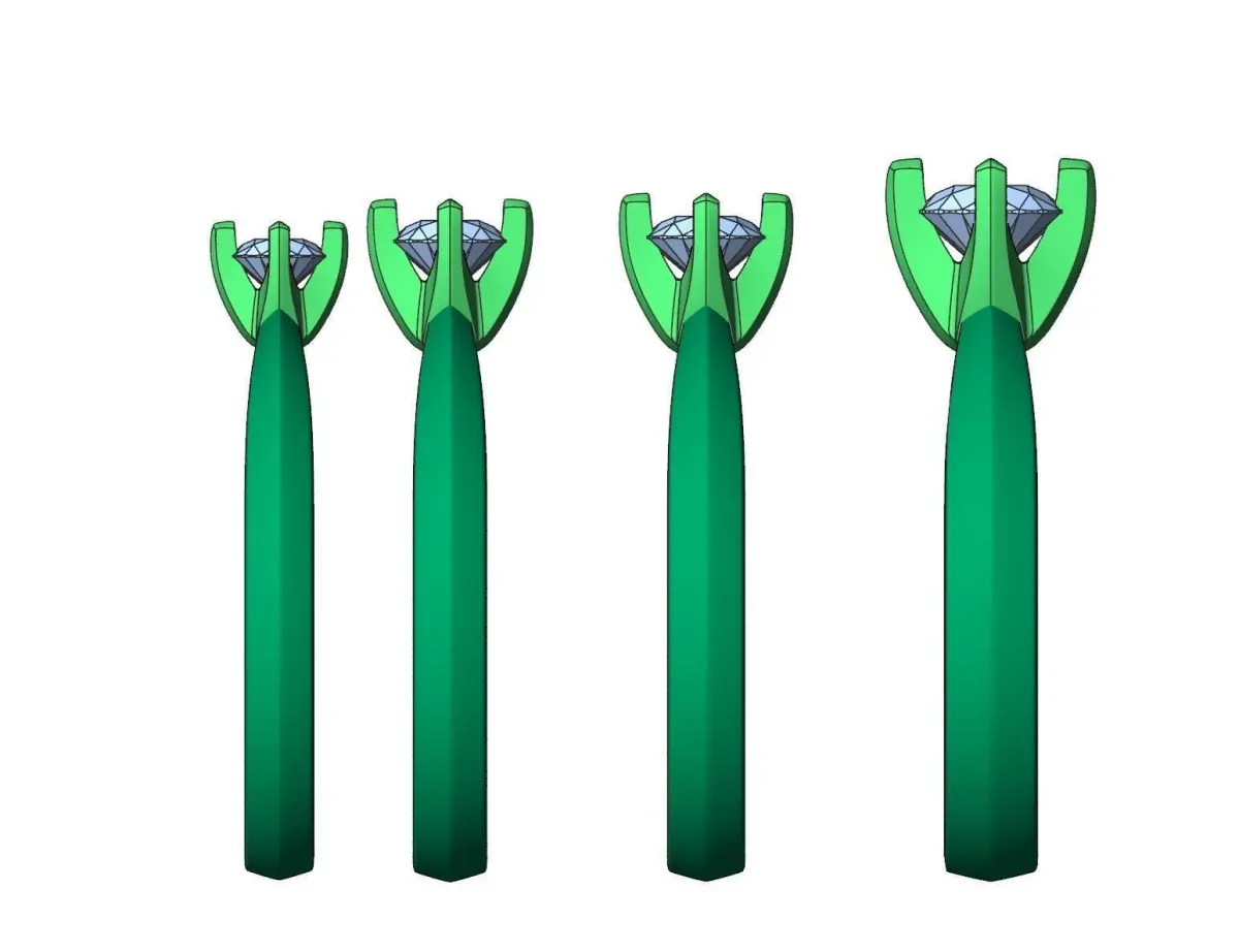 Solitaire rings with modern cross head (4 rings with size stones 0.15/0.25/0.3/0.5ct) with diamond 3d print model Size: 17/17/17/17mm diameter Gems:3.4mm/4.1mm/4.3mm/5.2mm Weight:See tables above