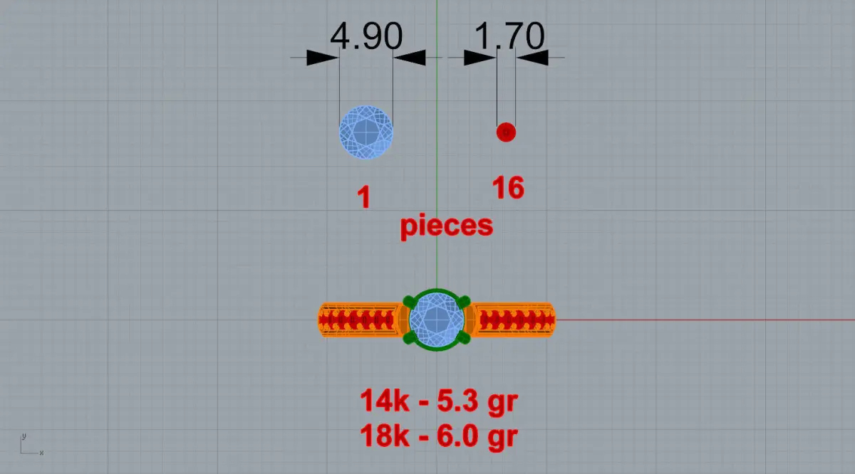 diamond diametr4.90 mm - 1 pieces1.70 mm - 16 pieces14k - 5.30 gr18k - 6.00 gr