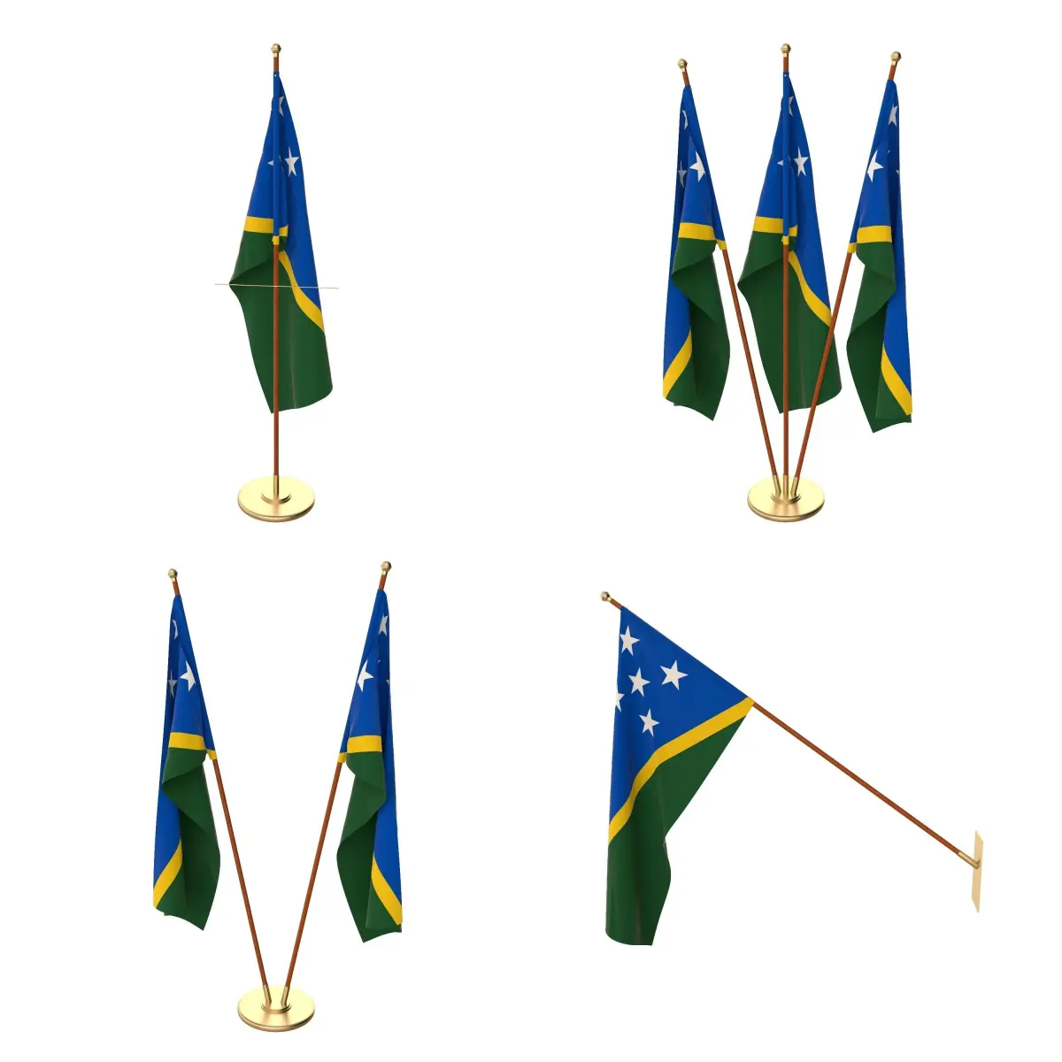 Set of four flag setups(exterior flag and three different office flags).