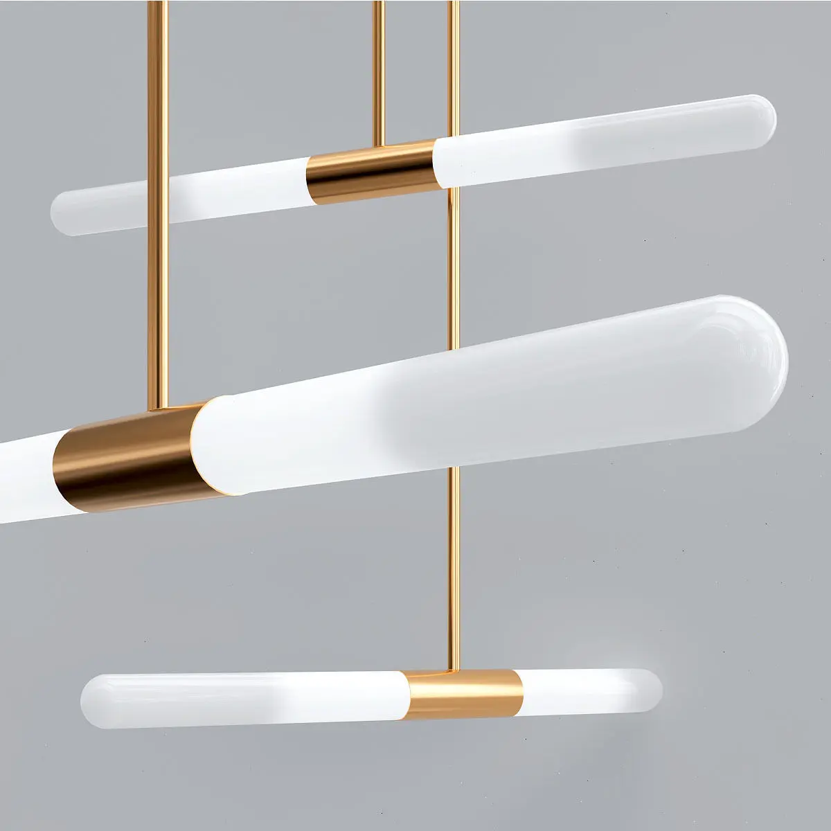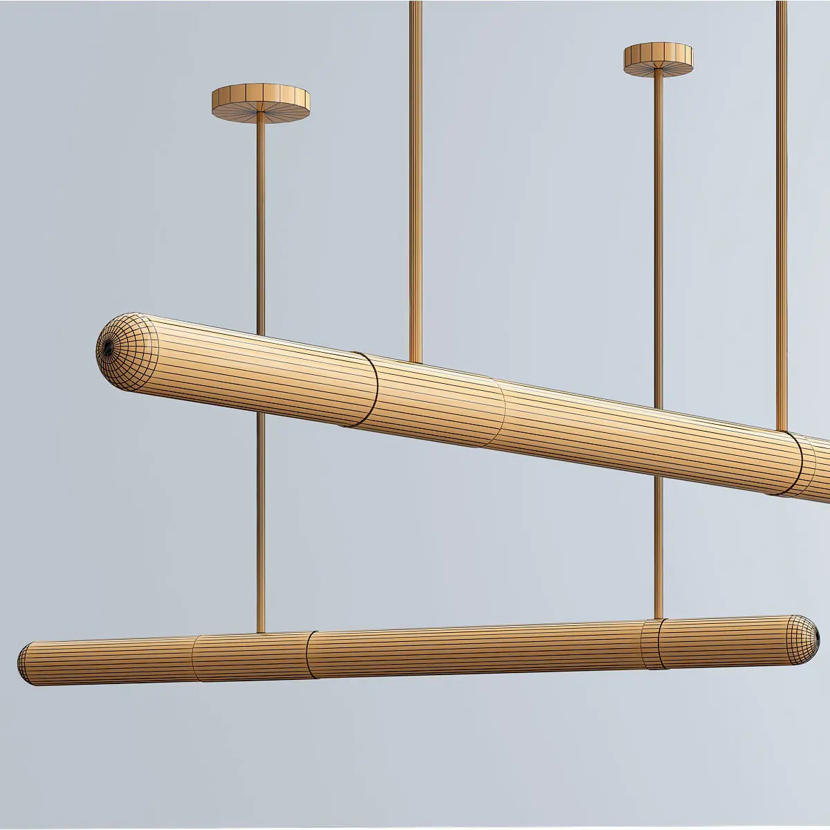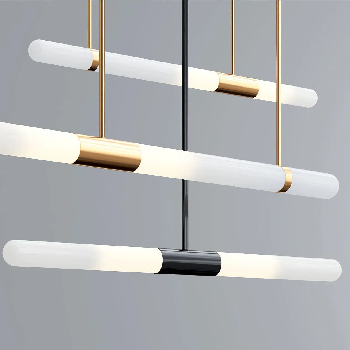 A series of rack-and-pinion lamps on one and two racks with an elongated cylindrical ceiling made of glass