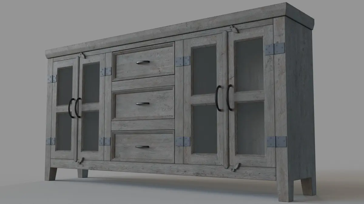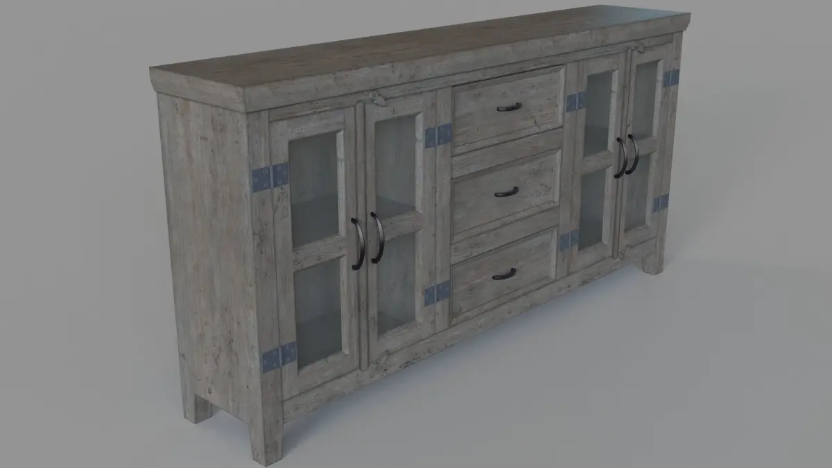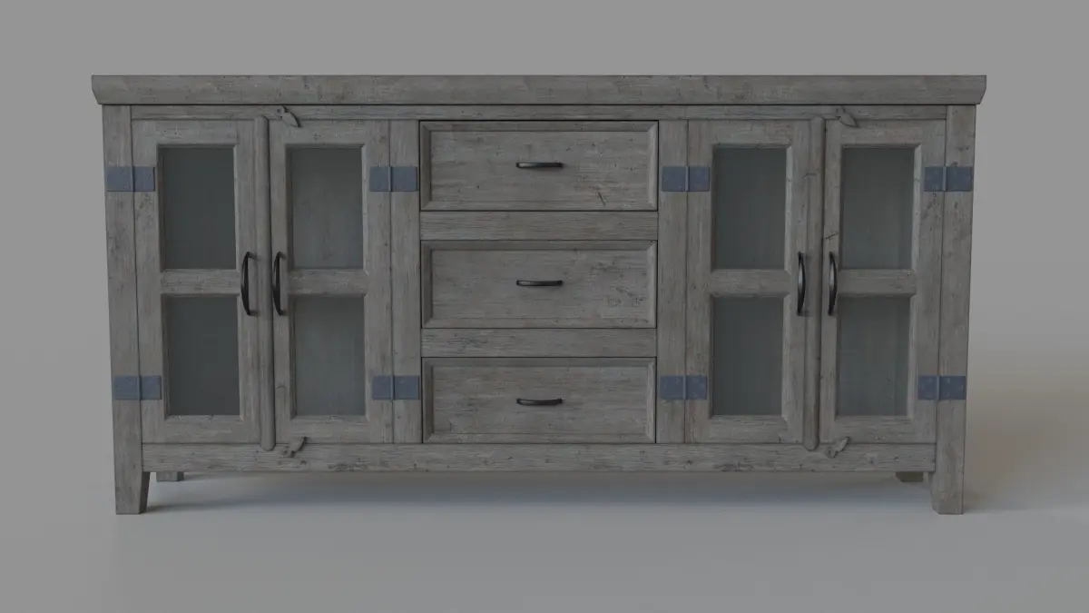 Somette Four Door Three Drawer Media Credenza Carrier Grey